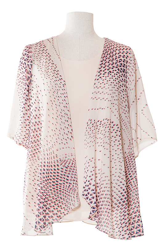 Komplet Florentyna to model, który efektownie doda ekstrawagancji każdej stylizacji. Ciekawa, wzorzysta narzutka w połączeniu z luźną, zwiewną bluzką to awangarda, która jest idealna dla każdej charyzmatycznej kobiety.