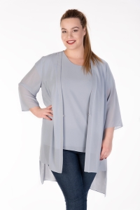 Komplet mona to efektowny model, który każdej stylizacji doda oryginalności. Pomysłowa dłuższa z tylu, zapisana narzutka, w połączeniu z luźną, zwiewną bluzką to nietuzinkowe zestawienie wygody i ekstrawagancji. Klasyczne kolory w nowoczesnym wydaniu, które w połączeniu np.: z kolorowym dołem sprawią, ze każda kobieta podkreśli swoja barwną, kobiecą naturę.