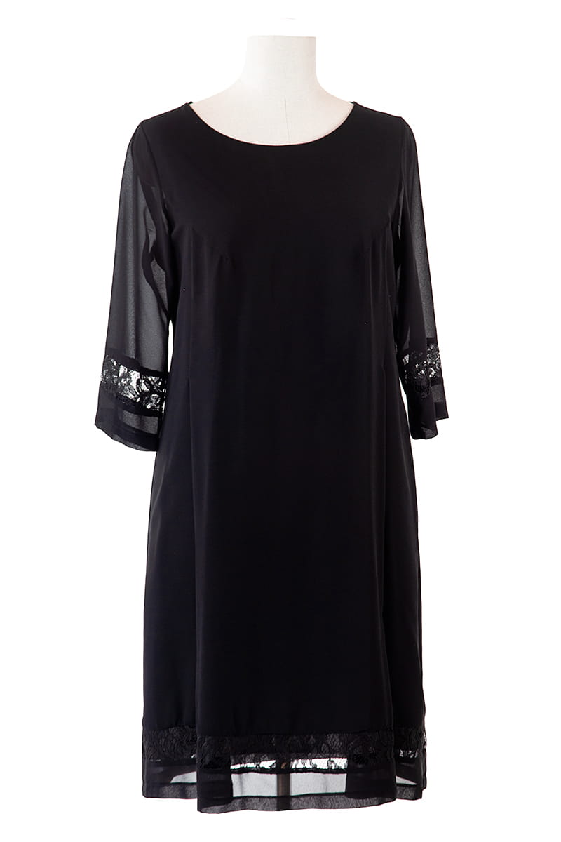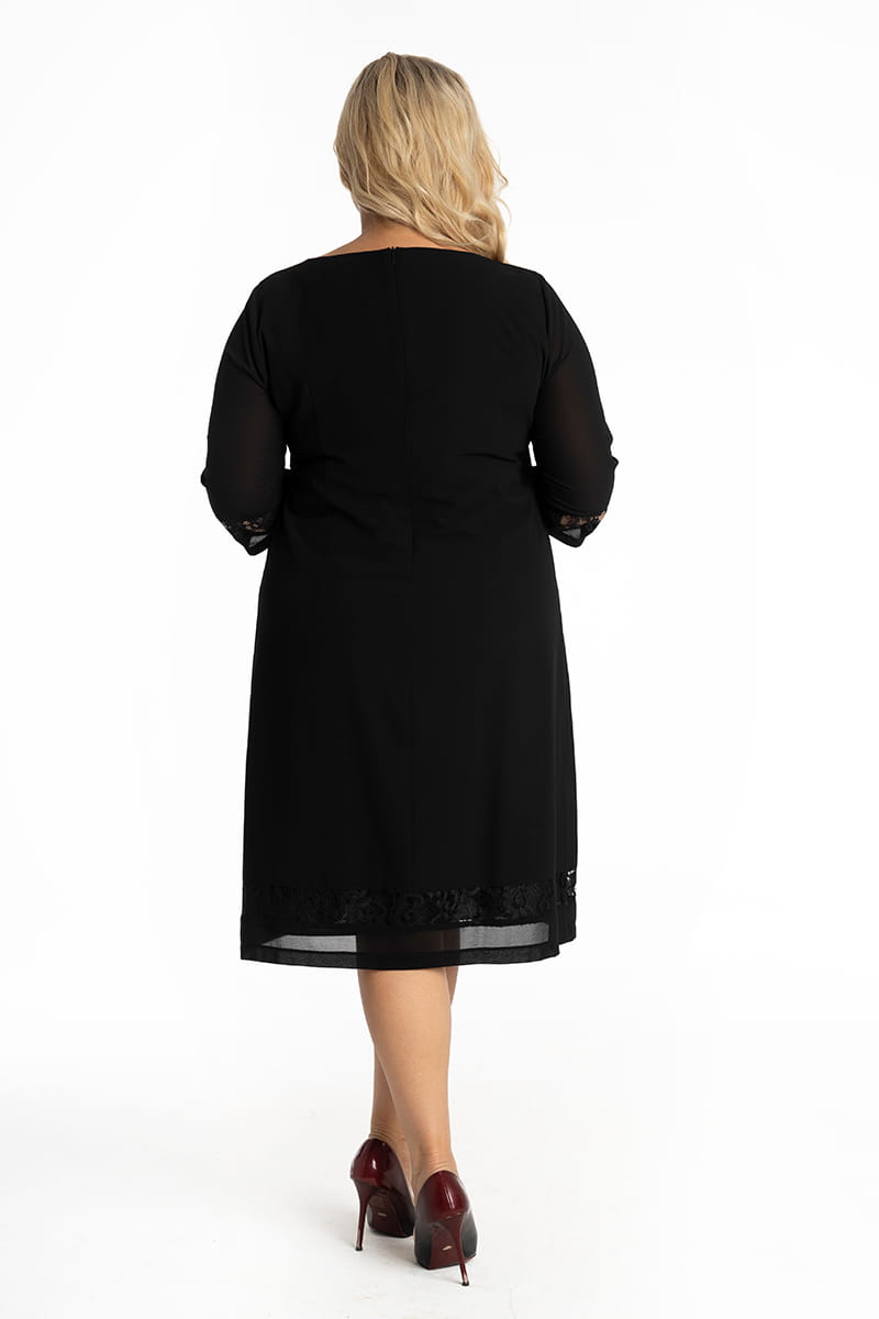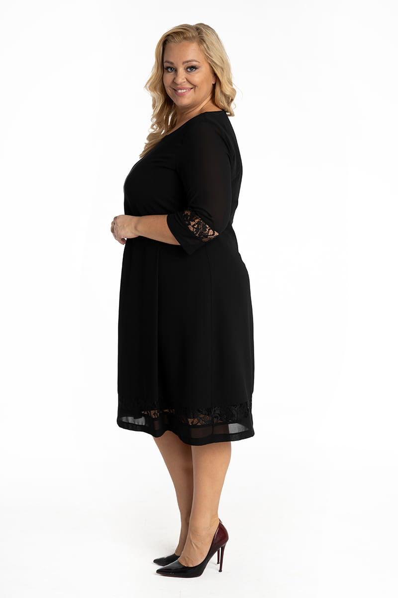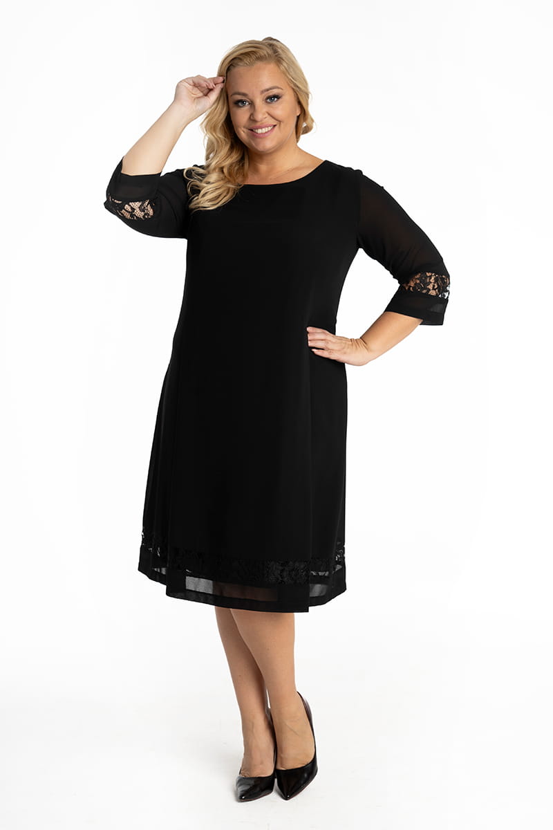 Alina to szyfonowa sukienka o lekko trapezowym kroju. Ciekawy look tej sukienki zapewniają pionowe fałdy w przodzie oraz prześwity z koronki na dole sukienki i w rękawach. Naszym zdaniem ten odszyty z najwyższą starannością model to must have nie tylko w szafie Ani.
