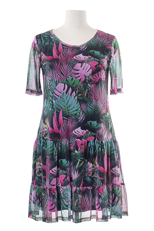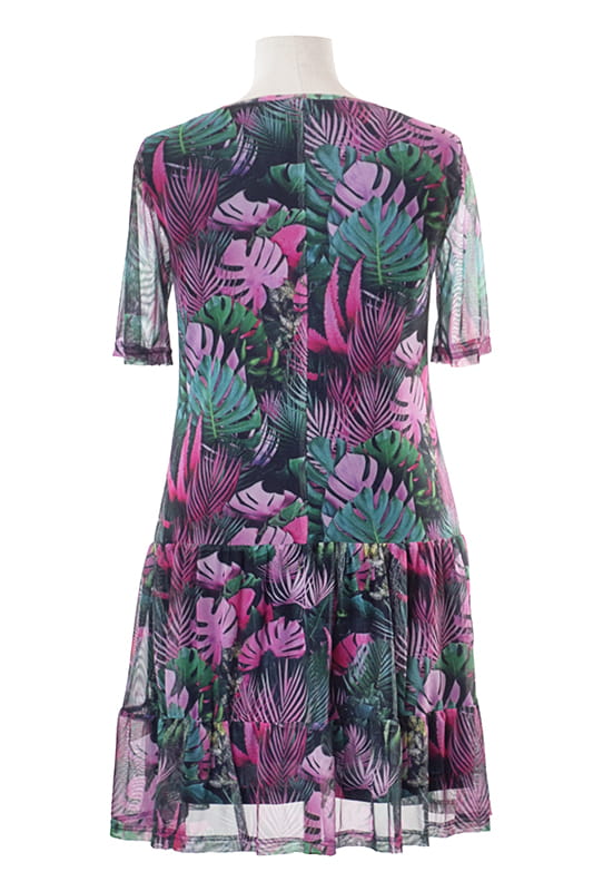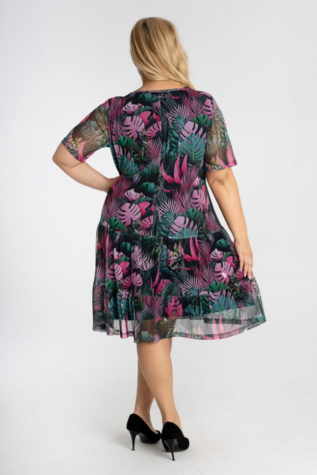 Britney to lekka i zwiewna sukienka wykonana z delikatnej dzianinowej siateczki. Niebanalny wzór podkreśla urodę, a krój z rękawami ? oraz dołem wykończonym falbanką, kształty. Dzięki dzianinie sukienka idealnie dopasowuje się do figury nie powodując dyskomfortu.