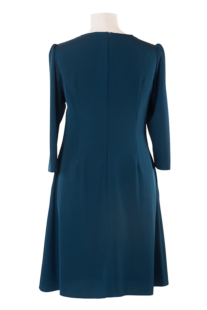 Daren to klasyczna sukienka o trapezowym kroju wykonana z lejącej i lekko rozciągliwej tkaniny. Ten uniwersalny model ten sprawdzi się na wiele okazji. W szwach bocznych ukryliśmy kieszonki, mały zgrabny dekolt jest idealny na jesienno-zimową porę, a małe bufki w rękawach sprawiają, że sukienka jest bardzo dziewczęca. Całość odszyta jest podszewką, z tyłu zapinana na zamek błyskawiczny.