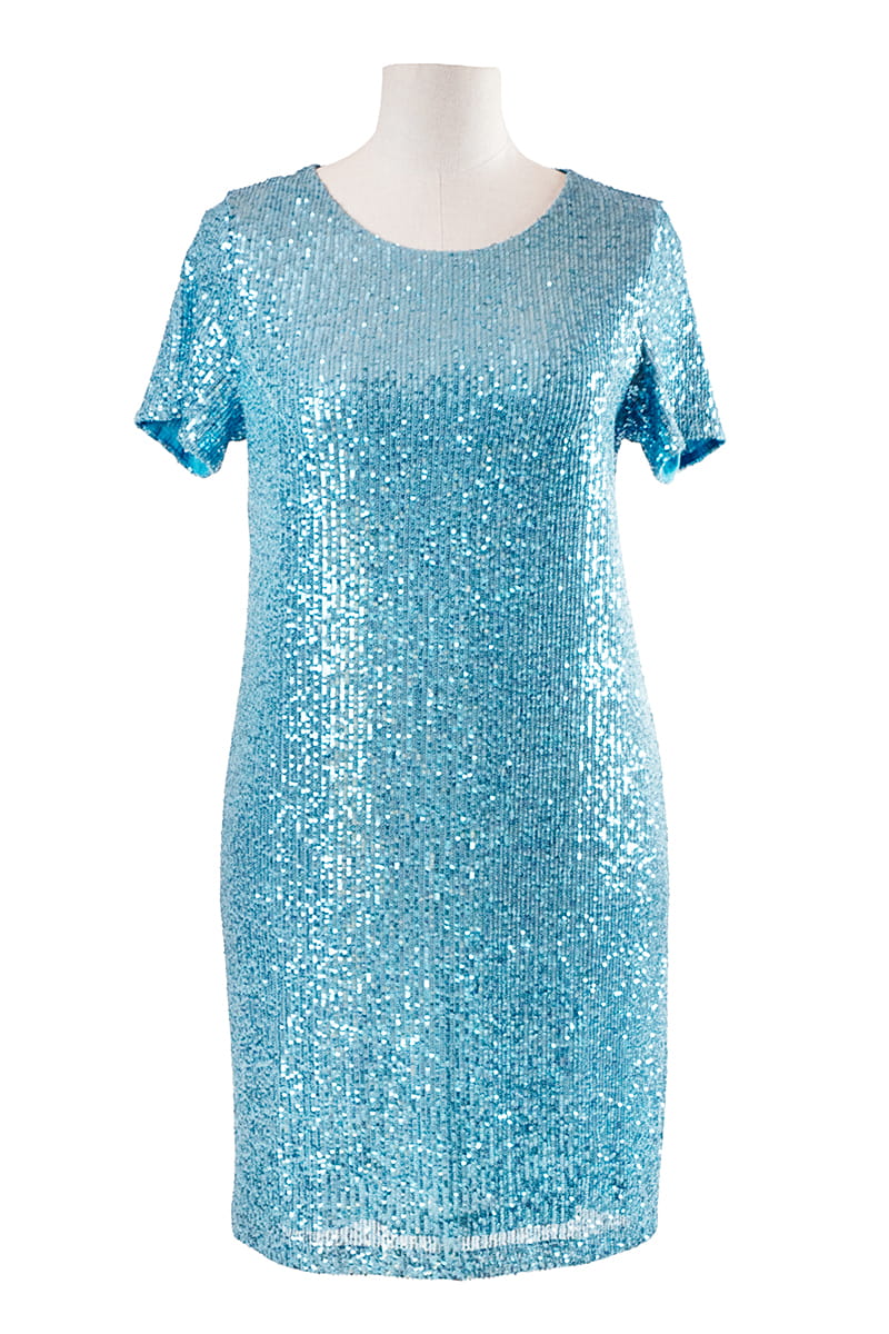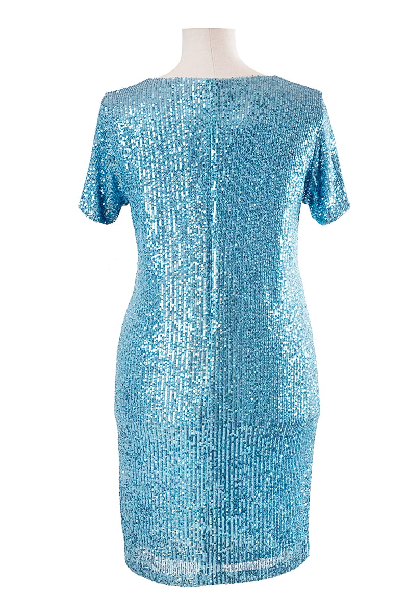 Dixi to model dla kobiet ceniących sobie klasykę i wygodę, ale z efektem WOW! Sukienka wykonana została z dzianiny pokrytej w całości rzędami cekinów, które ułożone pionowo wysmuklają sylwetkę. Dla większego komfortu sukienka jak i rękawki zostały odszyte dzianinową podszewką, z tyłu zapinana jest na zamek błyskawiczny.