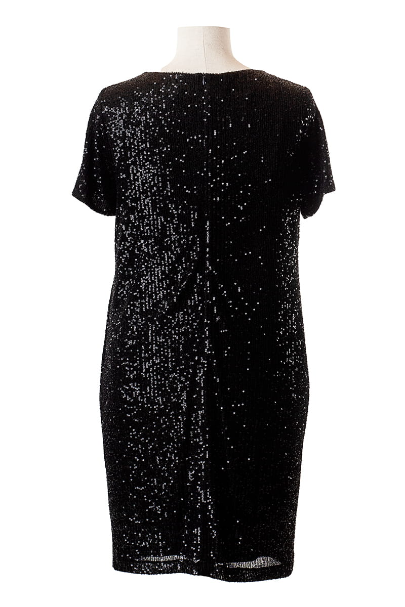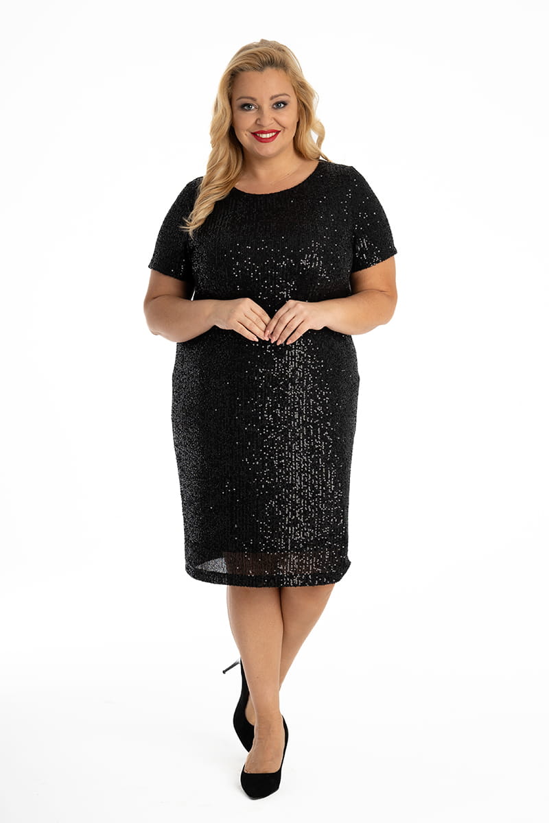 Dixi to model dla kobiet ceniących sobie klasykę i wygodę, ale z efektem WOW! Sukienka wykonana została z dzianiny pokrytej w całości rzędami cekinów, które ułożone pionowo wysmuklają sylwetkę. Dla większego komfortu sukienka jak i rękawki zostały odszyte dzianinową podszewką, z tyłu zapinana jest na zamek błyskawiczny.