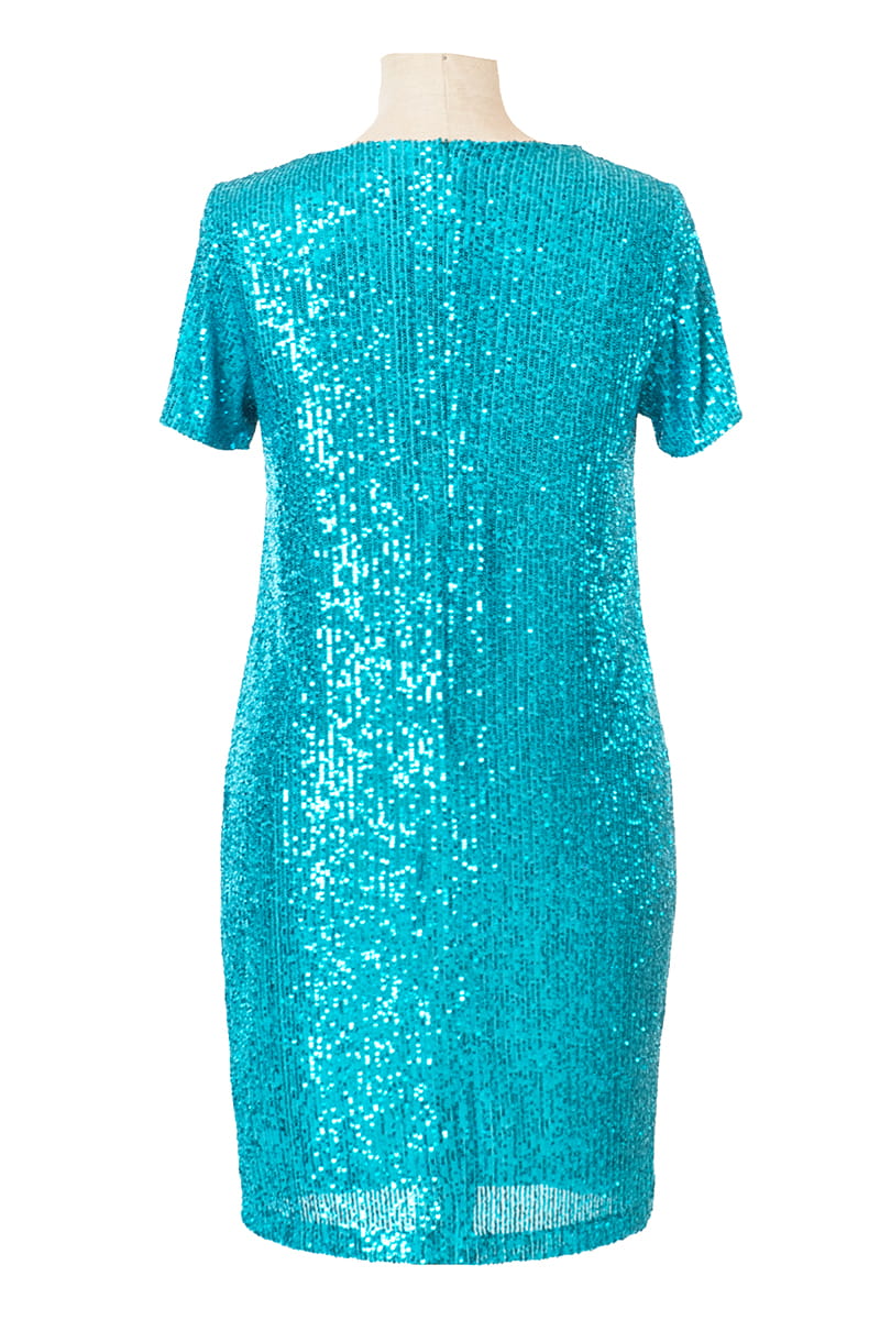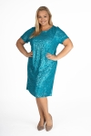 Dixi to model dla kobiet ceniących sobie klasykę i wygodę, ale z efektem WOW! Sukienka wykonana została z dzianiny pokrytej w całości rzędami cekinów, które ułożone pionowo wysmuklają sylwetkę. Dla większego komfortu sukienka jak i rękawki zostały odszyte dzianinową podszewką, z tyłu zapinana jest na zamek błyskawiczny.