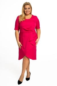 DORA to niebanalna sukienka wykonana z miłej w dotyku, lejącej tkaniny. Tył sukienki jest prosty, ale z przodu bardzo dużo się dzieje. Mamy ozdobne założenie w górnej części i kopertowy dół z asymetryczną zakładką. Zdecydowaliśmy, żeby nie obciążać tego modelu podszewką.