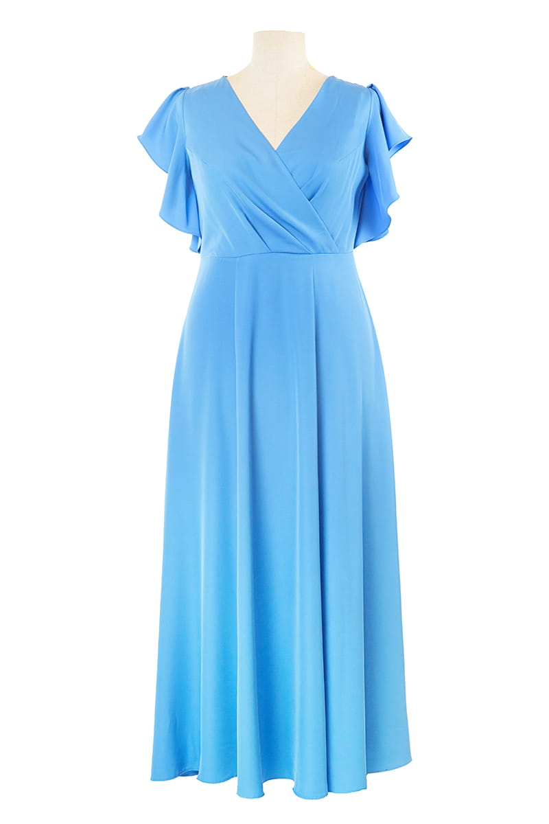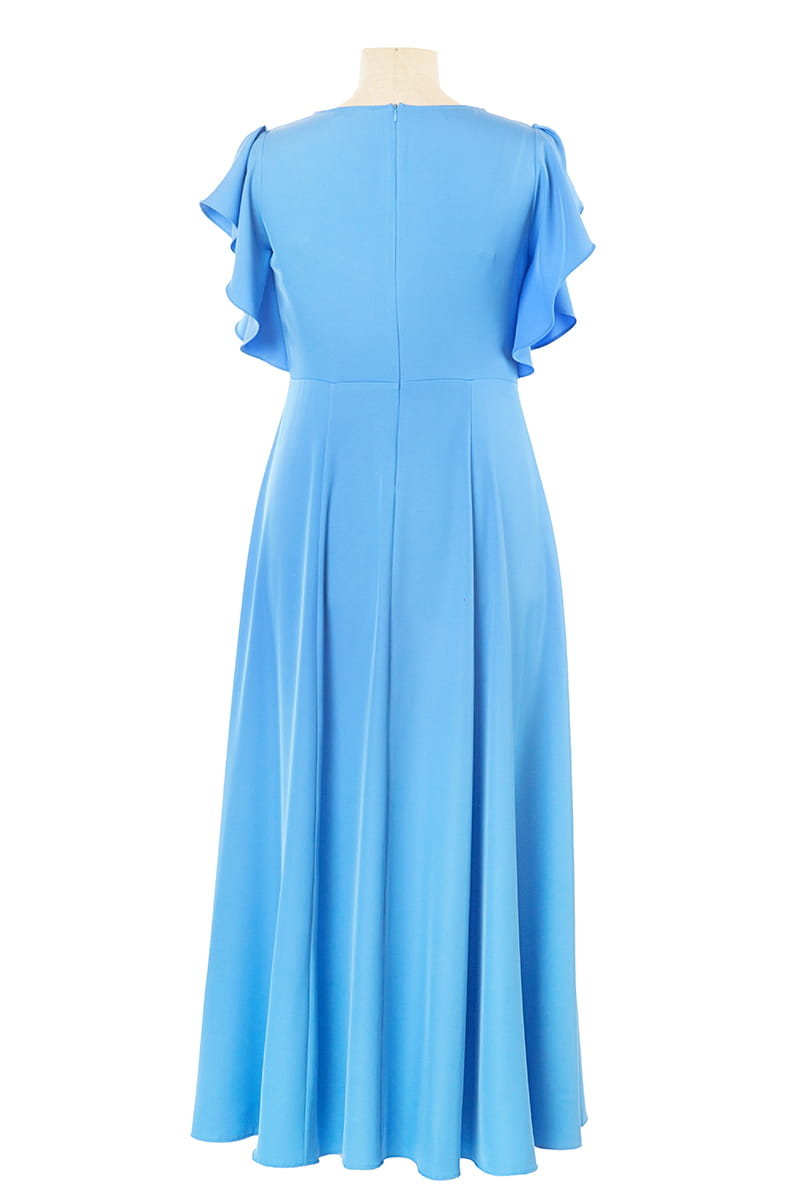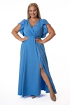 Sukienka Eliza to efektowna i wygodna zarazem kreacja na wielkie wyjście. Kopertowy dekolt wysmukla szyję i motylowe rękawy dodają lekkości. Dół sukienki stanowią rozszerzane ku dołowi kliny, na lewej nodze umieściliśmy rozporek. Sukienka zapinana jest z tyłu na zamek błyskawiczny.