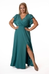 Sukienka Eliza to efektowna i wygodna zarazem kreacja na wielkie wyjście. Kopertowy dekolt wysmukla szyję i motylowe rękawy dodają lekkości. Dół sukienki stanowią rozszerzane ku dołowi kliny, na lewej nodze umieściliśmy rozporek. Sukienka zapinana jest z tyłu na zamek błyskawiczny.