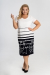 Elwira to sukienka, która sprawdzi się na każdą okazję. Lekka, wysokiej jakości tkanina pozwoli na komfort i swobodne użytkowanie. Oryginalny, geometryczny wzór to modny w tym sezonie motyw, który zachwyci wszystkie stylowe panie.