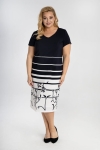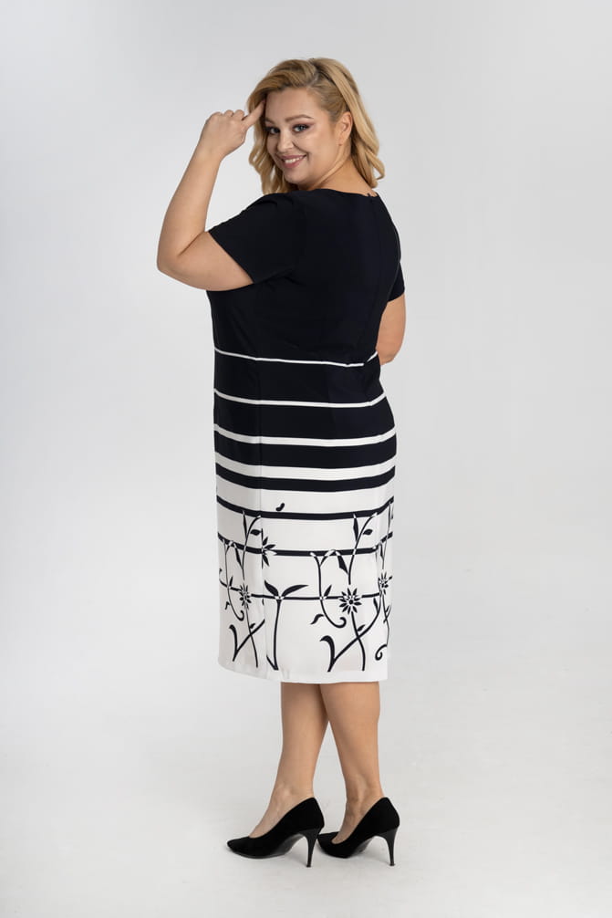 Elwira to sukienka, która sprawdzi się na każdą okazję. Lekka, wysokiej jakości tkanina pozwoli na komfort i swobodne użytkowanie. Oryginalny, geometryczny wzór to modny w tym sezonie motyw, który zachwyci wszystkie stylowe panie.