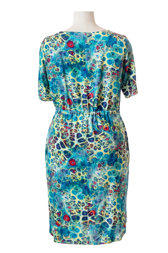 EMKA to kwintesencja lata. Sukienka uszyta została z przewiewnej wiskozy, nie posiada podszewki, bo latem nie potrzebujemy dodatkowych warstw. W pasie wszyty jest tunel z troczkiem i dzięki niemu dopasujesz sukienkę do swojego obwodu. W szwach bocznych ukryliśmy kieszenie, mały dekolt i rękawki przed łokieć chronią przed ostrym słońcem.