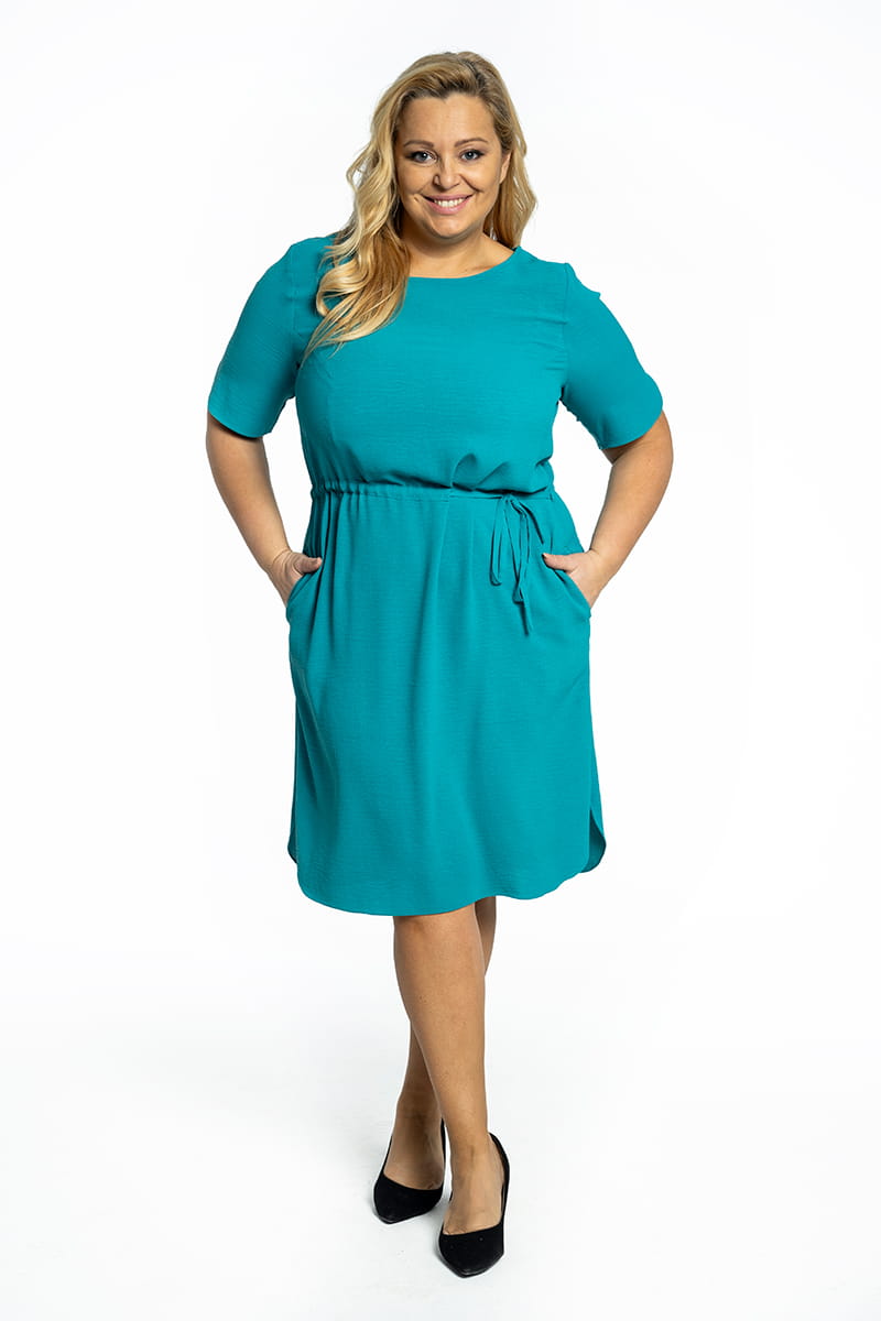 EMKA to kwintesencja lata. Sukienka uszyta została z przewiewnej wiskozy, nie posiada podszewki, bo latem nie potrzebujemy dodatkowych warstw. W pasie wszyty jest tunel z troczkiem i dzięki niemu dopasujesz sukienkę do swojego obwodu. W szwach bocznych ukryliśmy kieszenie, mały dekolt i rękawki przed łokieć chronią przed ostrym słońcem.