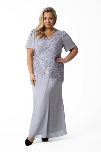 Florens to elegancka suknia o uwielbianym przez nasze klientki kroju syreny. Efektowna koronka stanowi górę tej kreacji, co w połączeniu z dekoltem w literkę "V" wysmukla sylwetkę. Rękawki wykonane zostały z szyfonu i dzięki zastosowaniu rozkloszowanego kroju, nie krępują ruchów i nie opinają ramion. Całość zapinana jest z tyłu na zamek błyskawiczny i odszyta podszewką.