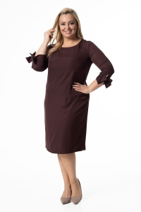 Gabi to koktajlowa sukienka o prostym kroju, który nie opina sylwetki. Uszyta została z lekko rozciągliwej tkaniny w dwóch wariantach wykończenia - matowym i z połyskiem. Przy jej prostej formie uwagę zwracają urocze kokardki na dole rękawów. Całość odszyta została dzianinową podszewką i zapinana jest z tyłu na zamek błyskawiczny.