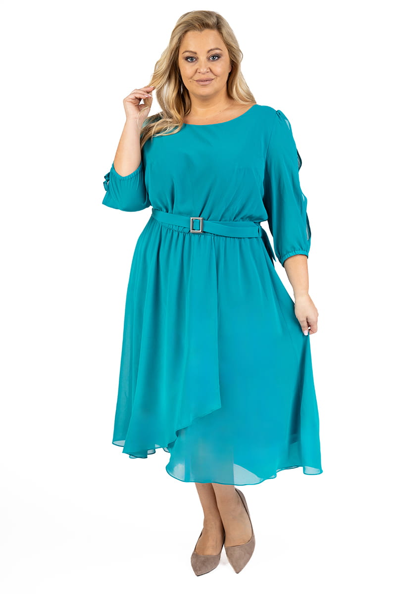 Gaja to propozycja dla kobiet ceniących komfort i elegancję. W zależności od wersji sukienka posiada pasek ze srebrną klamerką lub efektowny kwiatowy ornament. Rękaw długości 3/4 zakończony jest marszczeniami posiada pęknięcie na całej długości. Sukienka lekko się bluzuje dzięki gumce w pasie, a dzianinowa podszewka nie krępuje ruchów.