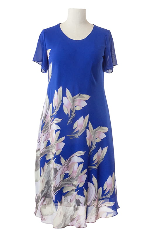 Sukienka Hanna to model krojony po skosie, dzięki czemu "pracuje" i dopasowuje się do sylwetki. Długość w pół łydki, zgrabny okrągły dekolt i piękny print na tkaninie sprawiają, że ta sukienka będzie świetnym wyborem zarówno na co dzień, jak i od święta.