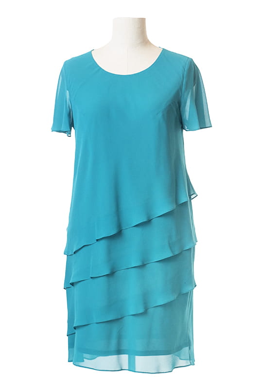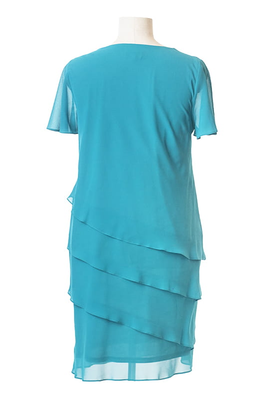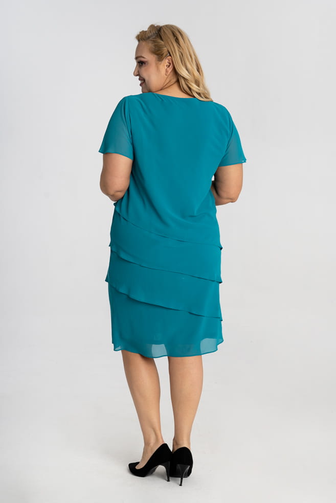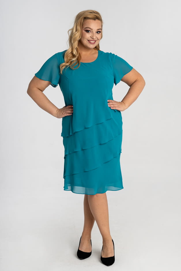 Iga to uniwersalna sukienka uszyta z szyfonu, którego warstwy nakładają się kaskadowo. Spód sukienki stanowi dzianinowa podszewka, a szyfon skrojony jest po skosie, dzięki czemu sukienka rozciąga się i dopasowuje do sylwetki. Kaskadowy fason kryje niedoskonałości, więc w tej sukience będziesz czuć się komfortowo.