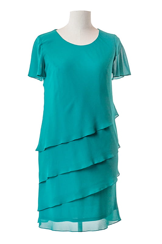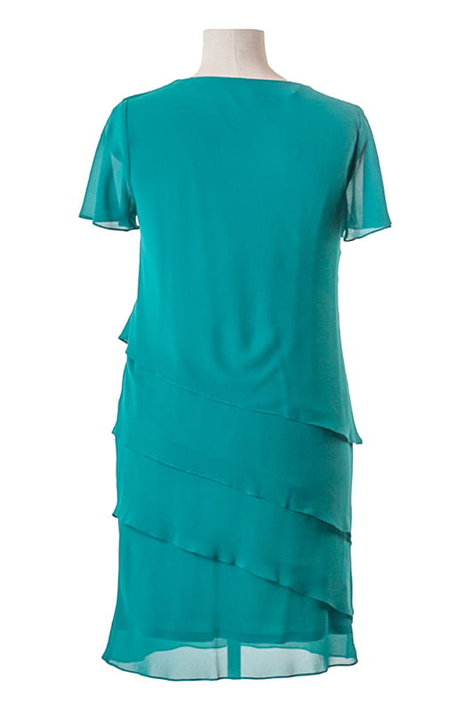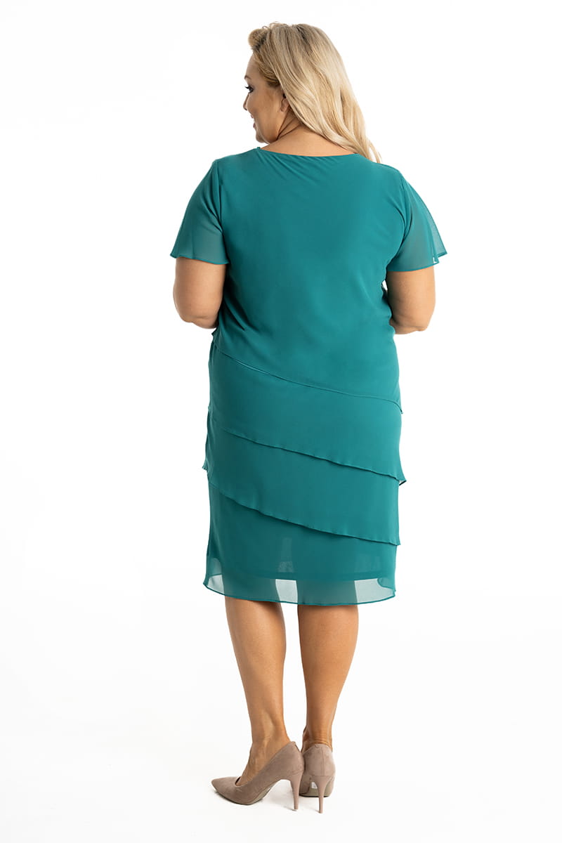 Iga to uniwersalna sukienka uszyta z szyfonu, którego warstwy nakładają się kaskadowo. Spód sukienki stanowi dzianinowa podszewka, a szyfon skrojony jest po skosie, dzięki czemu sukienka rozciąga się i dopasowuje do sylwetki. Kaskadowy fason kryje niedoskonałości, więc w tej sukience będziesz czuć się komfortowo.
