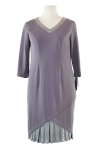 Kornelia to sukienka dla kobiet, które uwielbiają efektowne rozwiązania. Dekolt wykończony brokatową plisą w kształcie litery V . Dół wykończony ponadczasową plisowaną wstawką. Rękaw 3/4. Sukienka nie posiada podszewki.