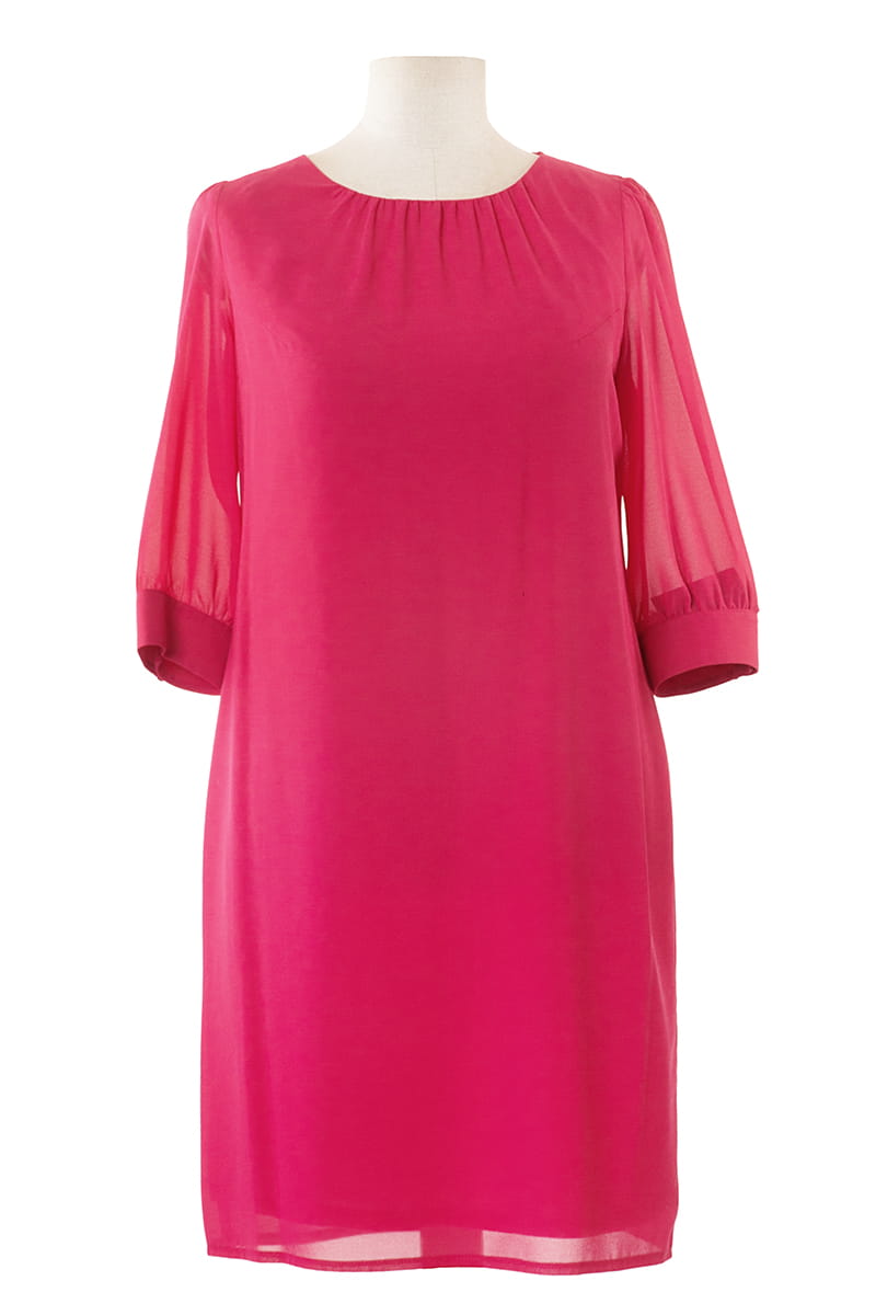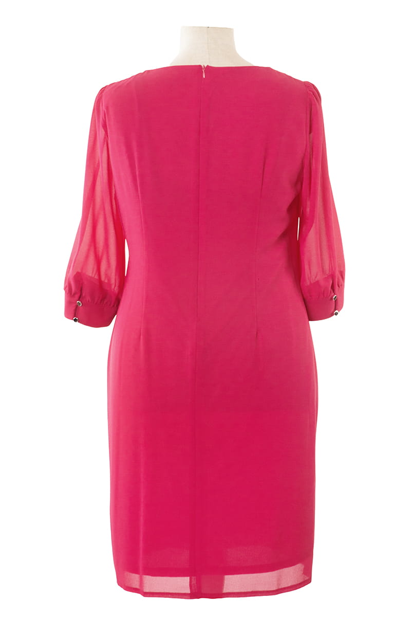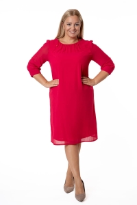 Larysa to sukienka prosta i efektowna zarazem. Zgrabny okrągły dekolt zdobi delikatne marszczenie, a prosty krój tuszuje niedoskonałości figury. Sukienka zapinana jest z tyłu na zamek błyskawiczny i odszyta miękką dzianinową podszewką.