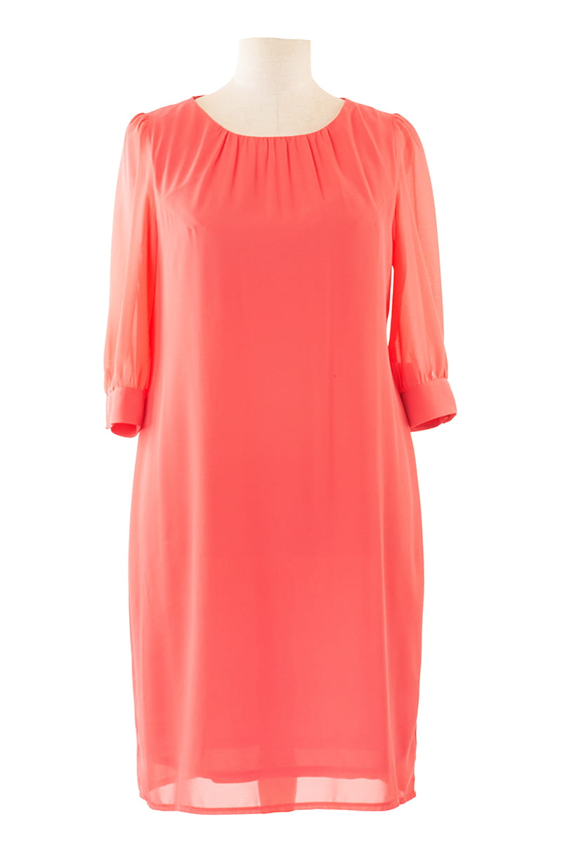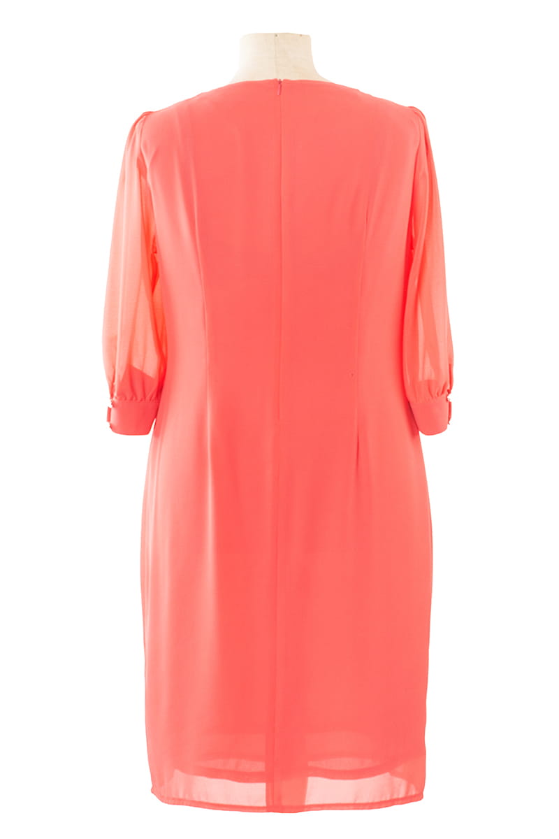 Larysa to sukienka prosta i efektowna zarazem. Zgrabny okrągły dekolt zdobi delikatne marszczenie, a prosty krój tuszuje niedoskonałości figury. Sukienka zapinana jest z tyłu na zamek błyskawiczny i odszyta miękką dzianinową podszewką.