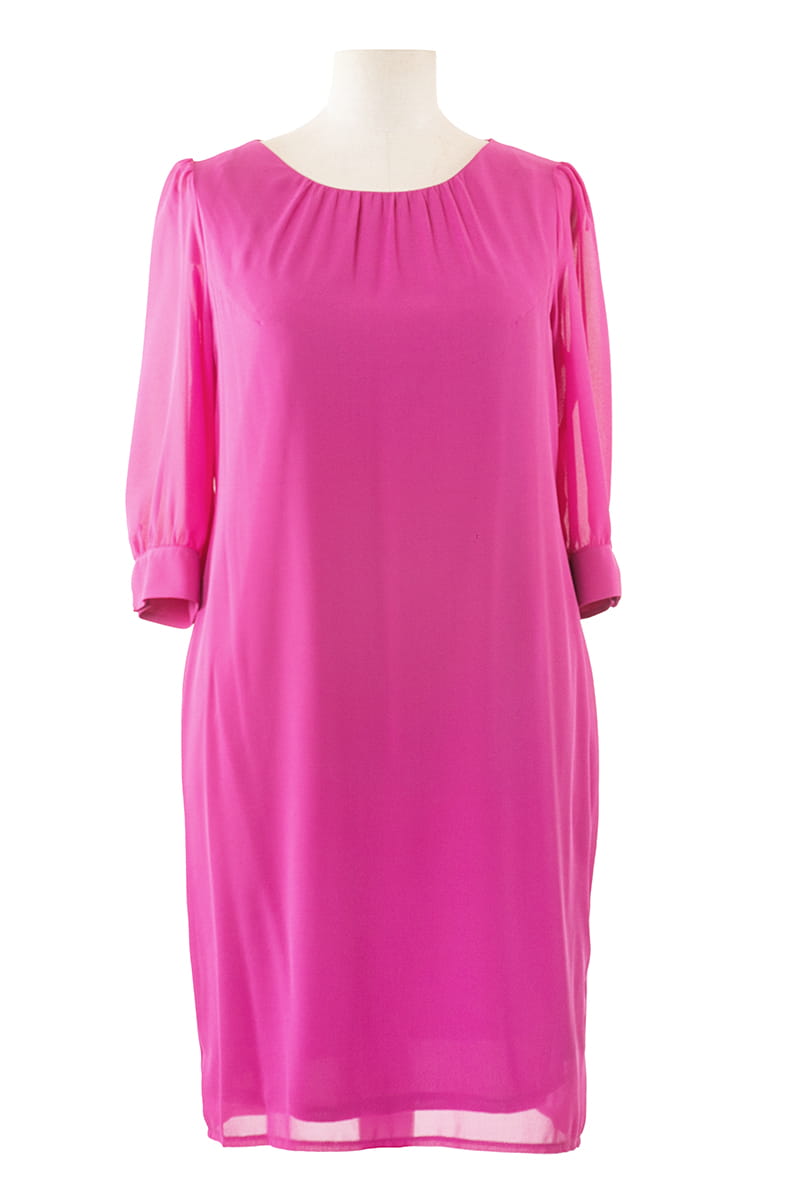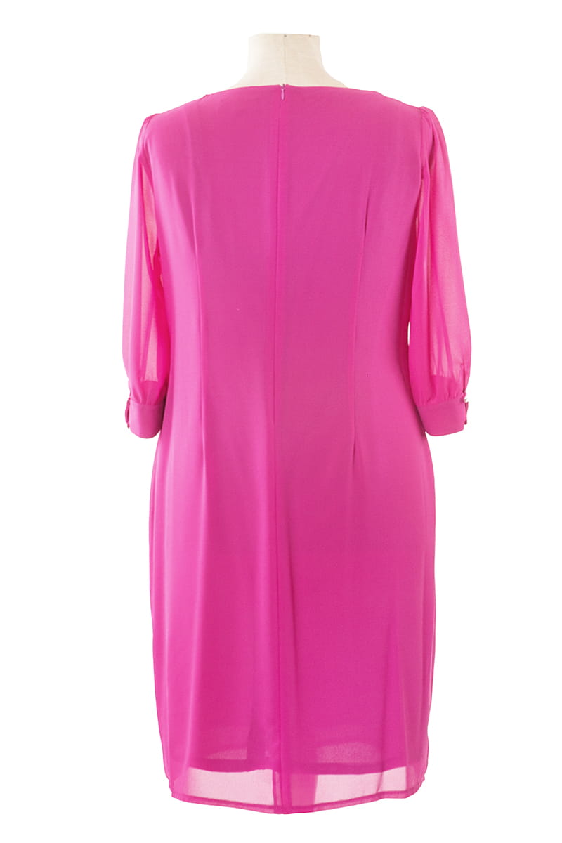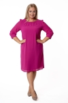 Larysa to sukienka prosta i efektowna zarazem. Zgrabny okrągły dekolt zdobi delikatne marszczenie, a prosty krój tuszuje niedoskonałości figury. Sukienka zapinana jest z tyłu na zamek błyskawiczny i odszyta miękką dzianinową podszewką.