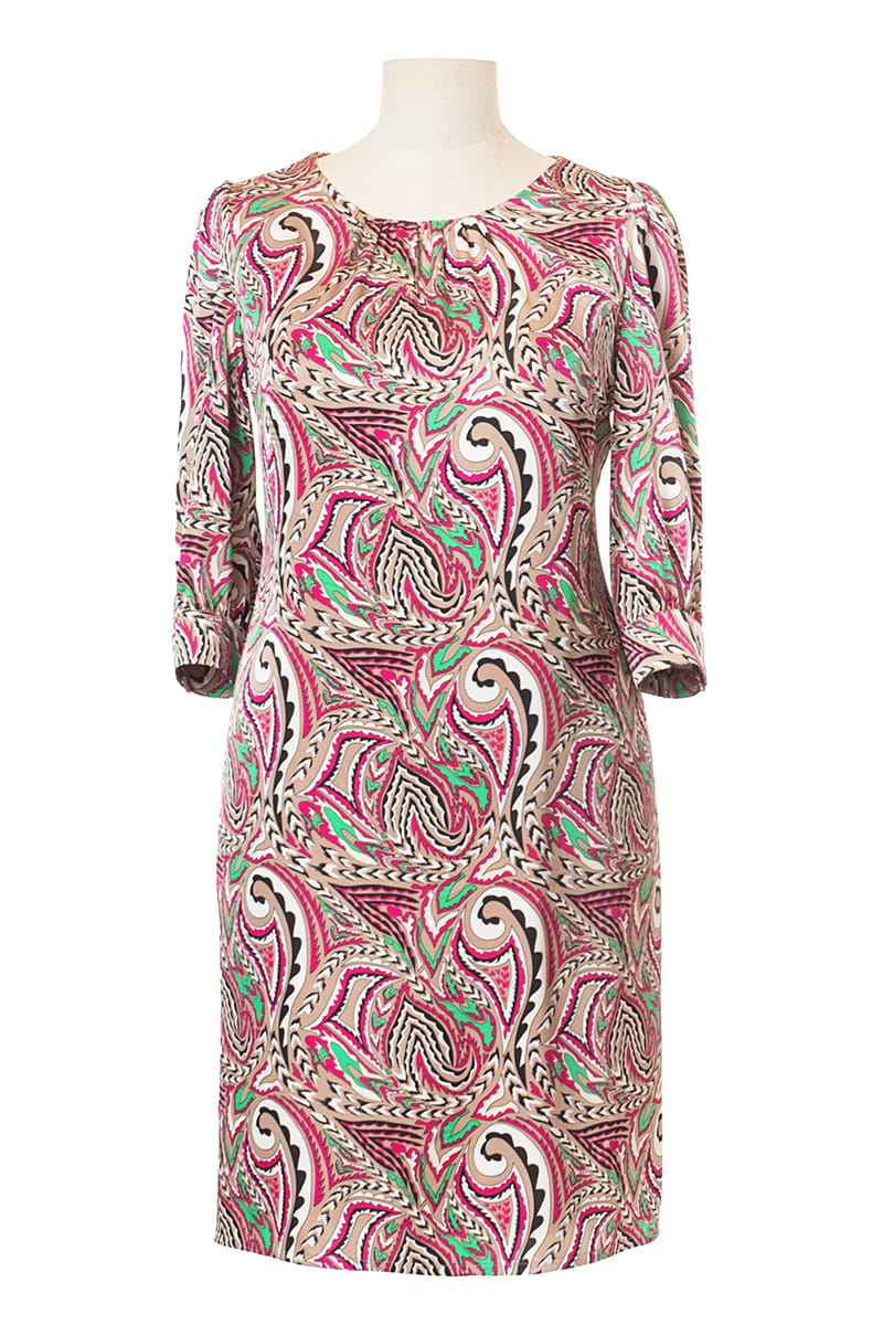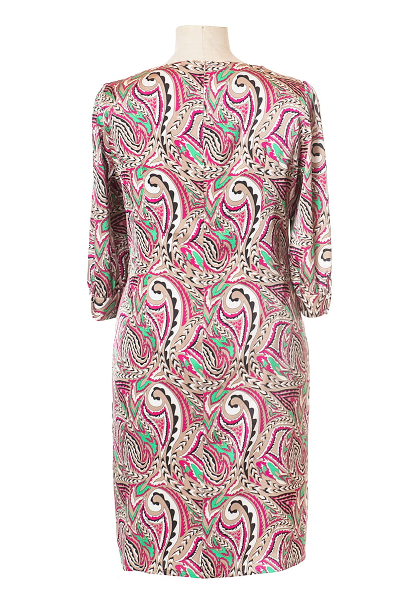 Larysa to sukienka prosta i efektowna zarazem. Zgrabny okrągły dekolt zdobi delikatne marszczenie, a prosty krój tuszuje niedoskonałości figury. Uwagę przyciągają długie rękawy zakończone efektownymi mankietami zapinanymi na srebrne guziczki. Sukienka zapinana jest z tyłu na zamek błyskawiczny i odszyta miękką dzianinową podszewką.