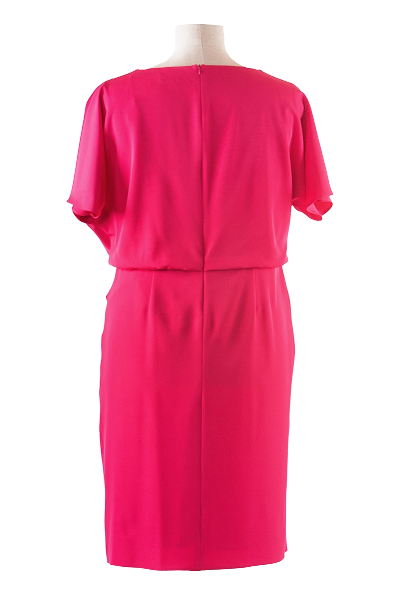Loris to nowoczesna sukienka z efektem zbluzowania. Asymetryczna forma i miękko układająca się tkanina zwracają uwagę i odejmują lat i kilogramów. Sukienka odszyta jest dzianinową podszewką i zapinana z tyłu na zamek błyskawiczny.