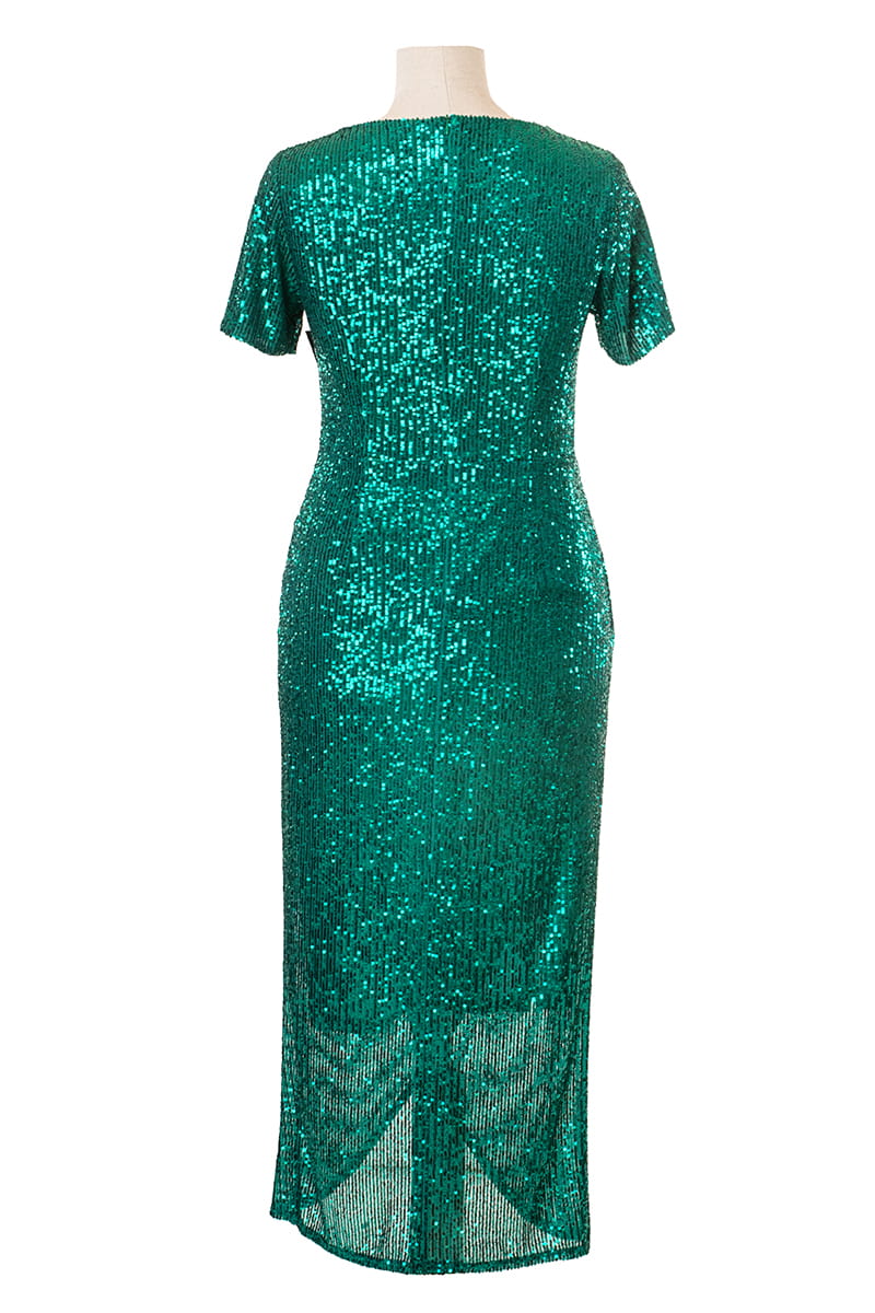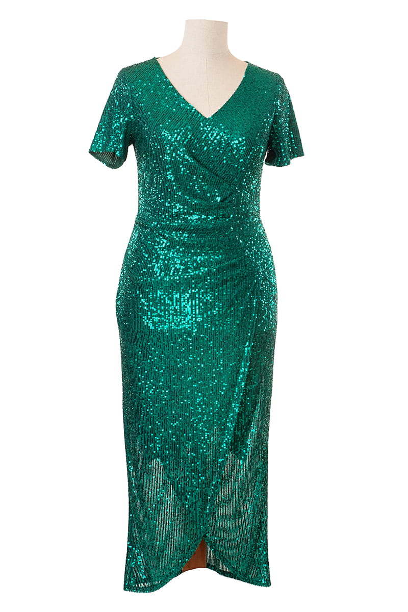 Marcela to kreacja, w której zawojujesz każdą imprezę. Kopertowa sukienka z tuszującymi zakładkami wykonana z mieniących się cekinów przykuwa uwagę i "robi" nam figurę. Model ten odszyliśmy w całości łącznie z rękawami dzianinową podszewką, z tyłu zapinana jest na zamek błyskawiczny.