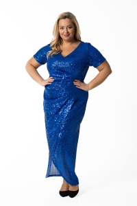 Marcela to kreacja, w której zawojujesz każdą imprezę. Kopertowa sukienka z tuszującymi zakładkami wykonana z mieniących się cekinów przykuwa uwagę i "robi" nam figurę. Model ten odszyliśmy w całości łącznie z rękawami dzianinową podszewką, z tyłu zapinana jest na zamek błyskawiczny.