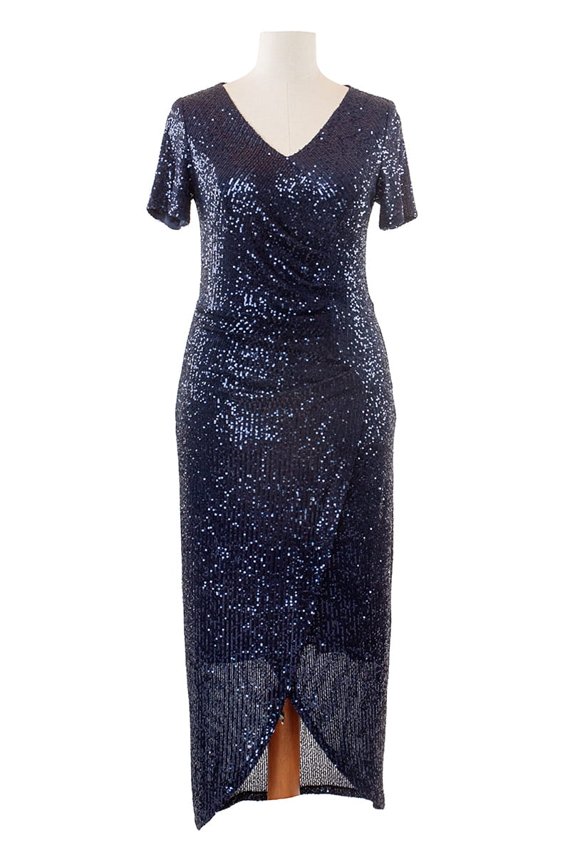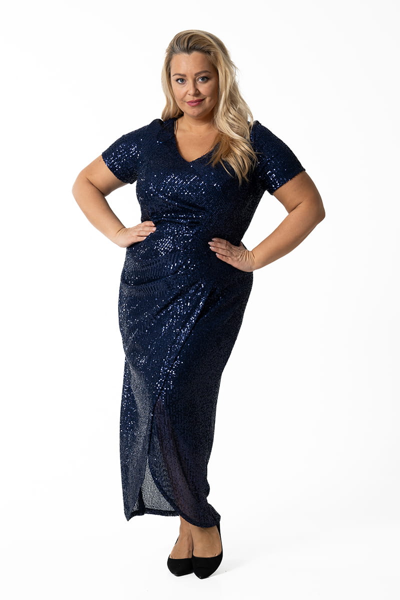 Marcela to kreacja, w której zawojujesz każdą imprezę. Kopertowa sukienka z tuszującymi zakładkami wykonana z mieniących się cekinów przykuwa uwagę i "robi" nam figurę. Model ten odszyliśmy w całości łącznie z rękawami dzianinową podszewką, z tyłu zapinana jest na zamek błyskawiczny.