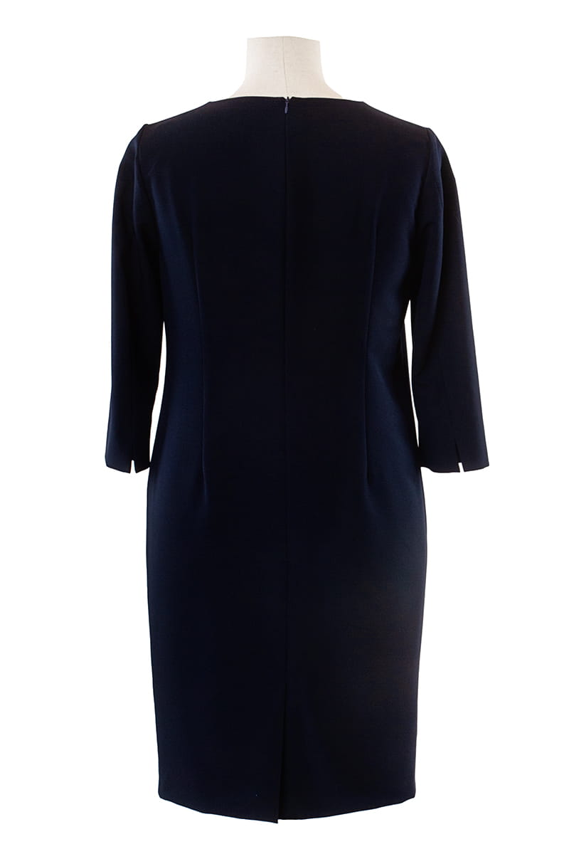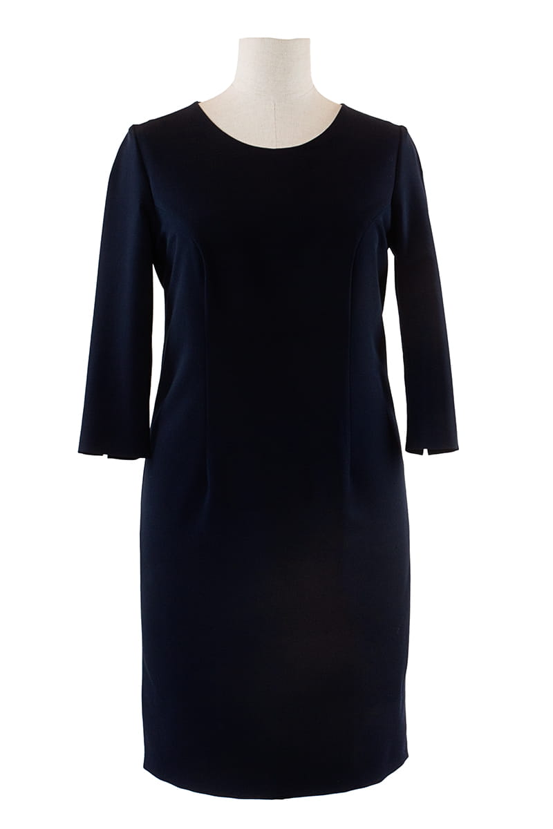 Marina to taka klasyka gatunku - prosta i ponadczasowa sukienka, która modna będzie zawsze. Wersja jesienno-zimowa zakłada mały zgrabny dekolt i rękawy długości 3/4 z pęknięciem na linii łokcia. Z tyłu mamy kryty rozporek, zapięcie na zamek kryty, a całość odszyta została podszewką.