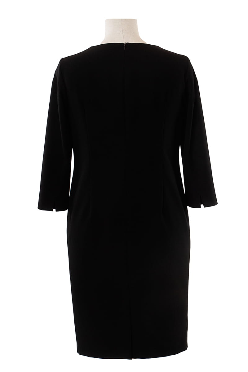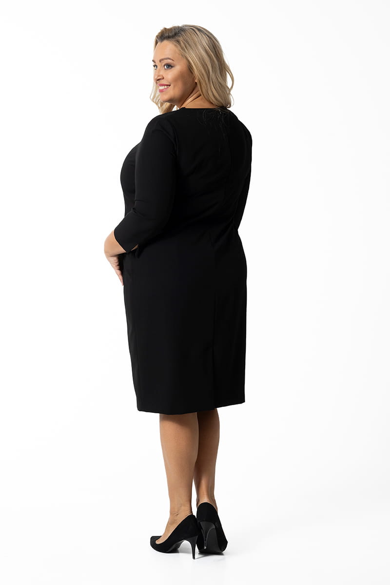 Marina to taka klasyka gatunku - prosta i ponadczasowa sukienka, która modna będzie zawsze. Wersja jesienno-zimowa zakłada mały zgrabny dekolt i rękawy długości 3/4 z pęknięciem na linii łokcia. Z tyłu mamy kryty rozporek, zapięcie na zamek kryty, a całość odszyta została podszewką.