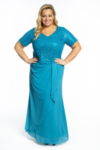 Marlena to długa szyfonowa sukienka, dzięki której poczujesz się komfortowo, a zarazem elegancko i wyjątkowo. Górę zdobi pięknie mieniąca się nałożona koronka, która zatuszuje Twoje ewentualne niedoskonałości. Dekolt w kształcie litery V wysmukli szyję, krój syreny wymodeluje sylwetkę, a fantazyjnie nałożona warstwa szyfonu zatuszuje brzuszek. Sukienka zapinana jest na zamek błyskawiczny z tyłu i odszyta podszewką.
