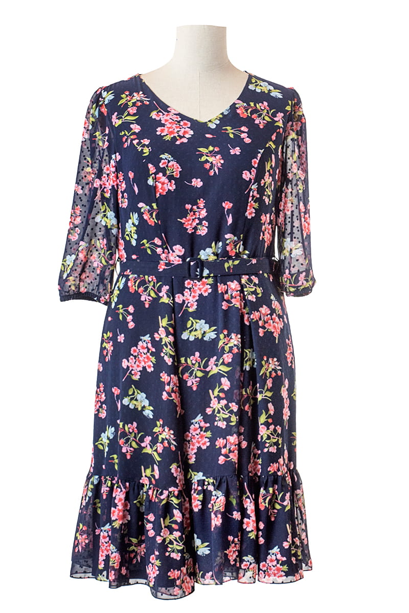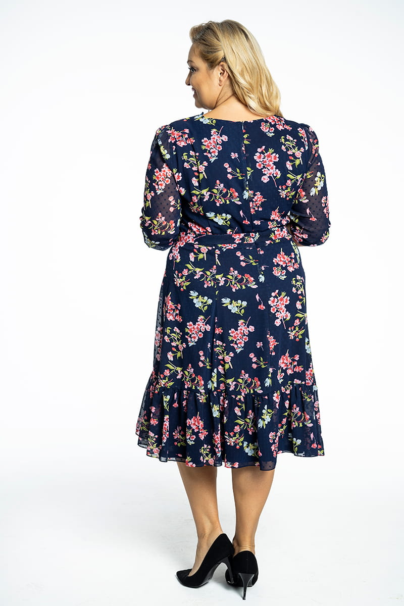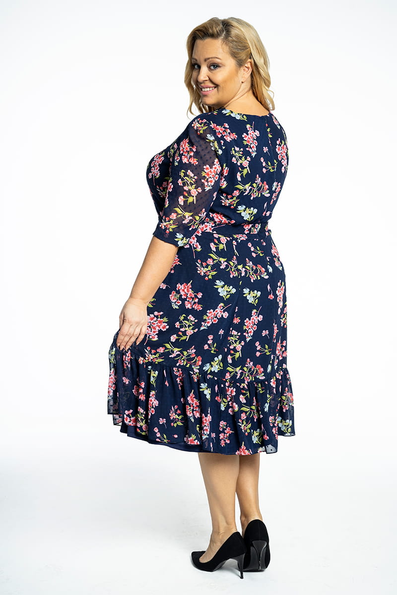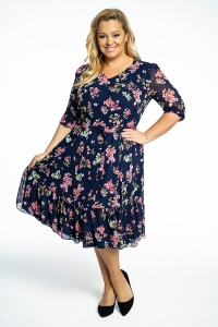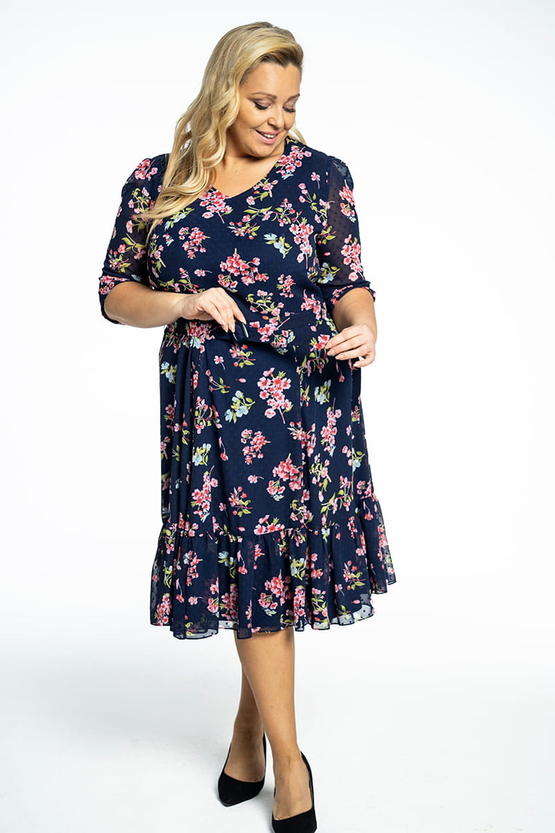 Milana to sukienka uszyta z kwiecistej tkaniny w stonowanych kolorach. Komfort noszenia zapewnia zastosowanie dzianinowej podszewki. Dekolt w kształcie litery V optycznie wysmukla szyję, pasek podkreśla talię, ale możesz z niego zrezygnować i sukienka nadal będzie wyglądała dobrze. Długi rękaw, zakończony marszczeniem i marszczona falbana na dole dodają modelowi kobiecości i romantyzmu.