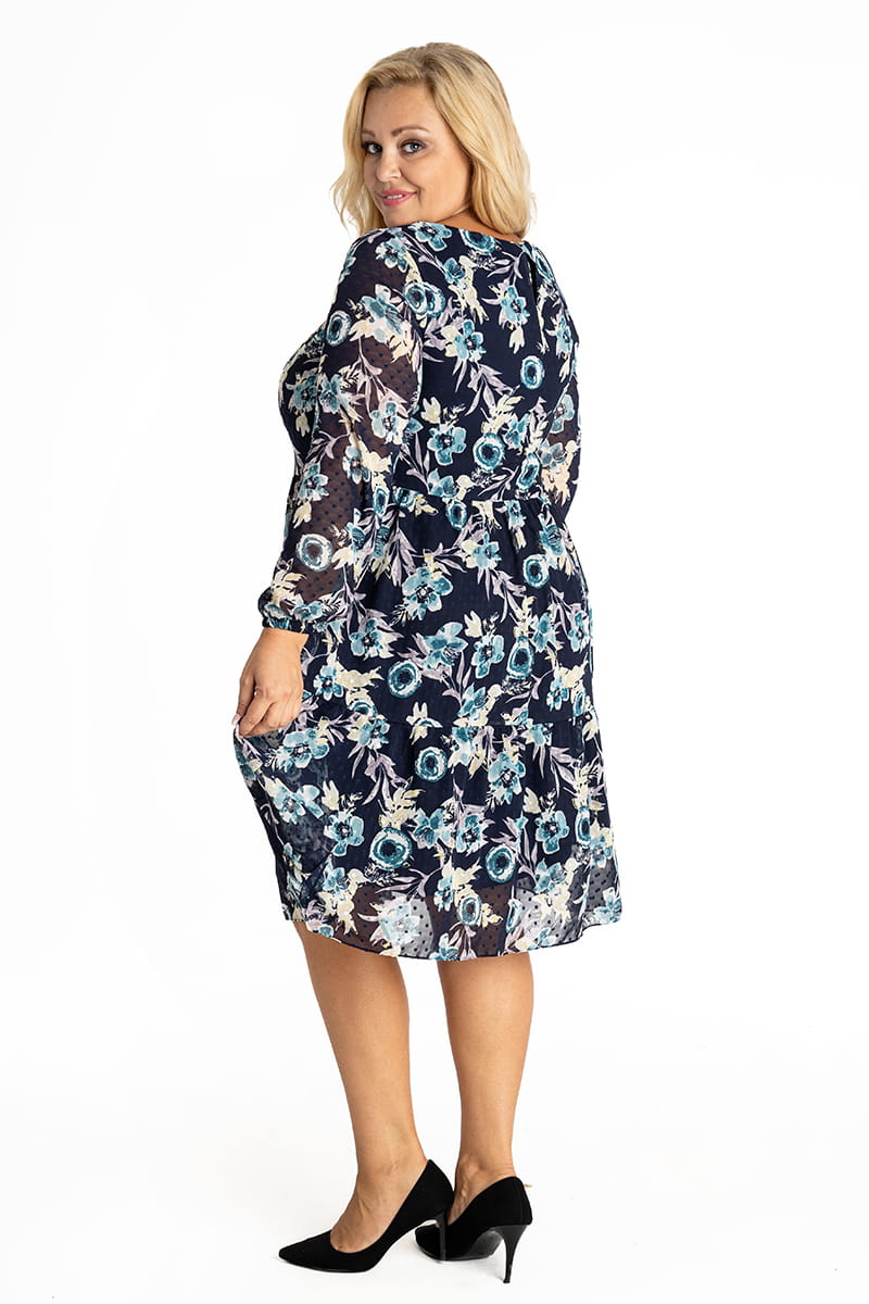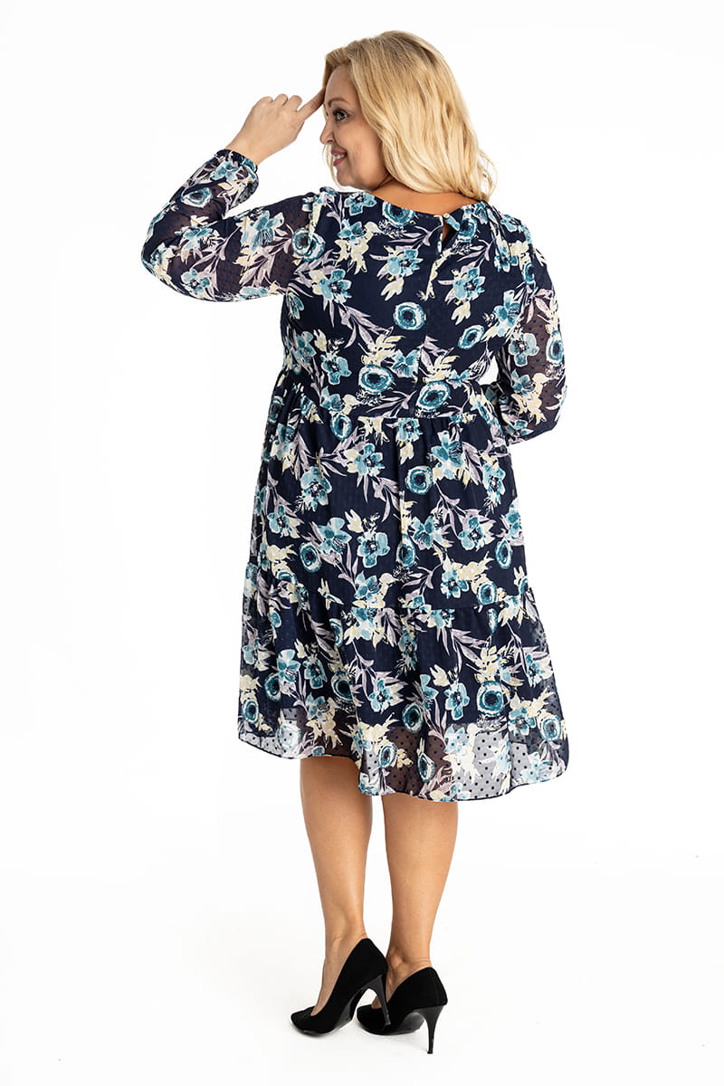 Natali to propozycja na co dzień i od święta. Sukienka ta jest bardzo swobodna, odcięcie w pasie nie krępuje ruchów i pomimo zachowanego w tym miejscu luzu nie poszerza,a wręcz wyszczupla sylwetkę nadając jej pożądane proporcje. Marszczony dół sukienki i długie rękawki zakończone gumeczką przypominają styl BOHO. Sukienka odszyta została miękką dzianinową podszewką.
