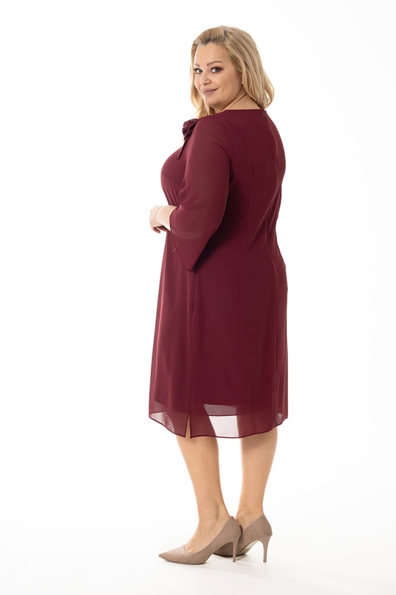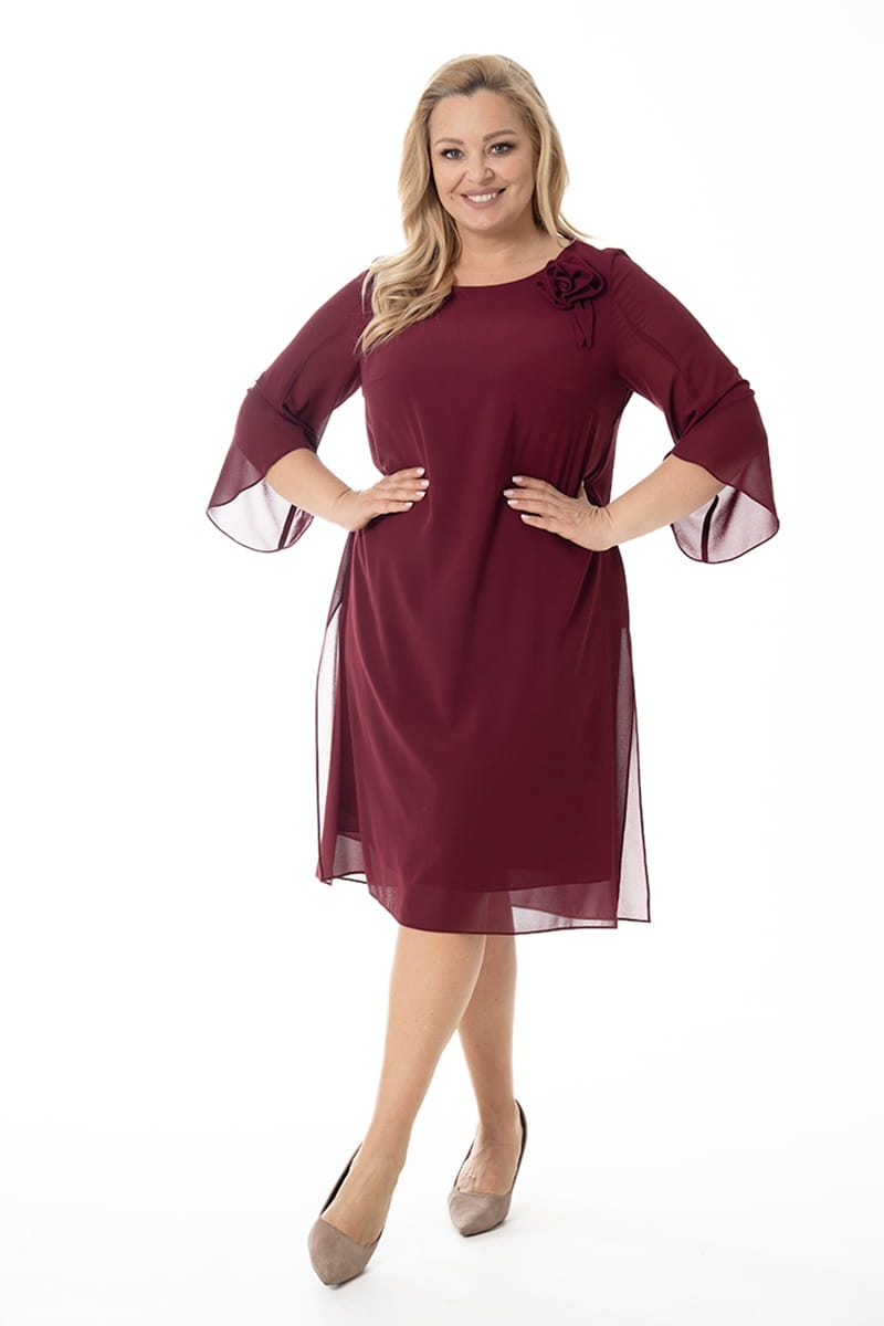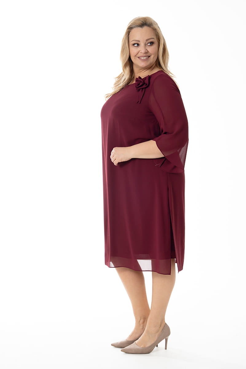 Oktawia to bardzo elegancka, a zarazem prosta w formie sukienka wykonana z dwóch warstw szyfonu. Wierzchnia warstwa jest nieco dłuższa, a w bokach zastosowaliśmy pęknięcia, które nadają kreacji lekkości. Atuty tej sukienki to zgrabny okrągły dekolt i swobodne rękawy oraz delikatny formowany kwiat, który można odpiąć. Całość odszyta jest dzianinową podszewką i zapinana na zamek błyskawiczny.