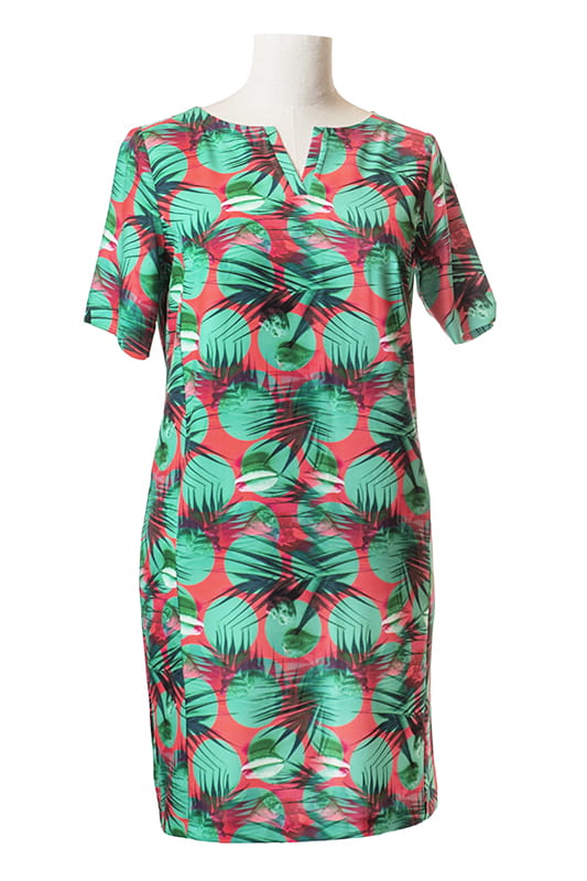 Oma to prosta wiosenno -letnia sukienka uszyta z miłej w dotyku, rozciągliwej tkaniny. Nie potrzebuje podszewki, dzięki czemu jest lekka i chłodna. Atutem tej sukienki są rękawy długości przed łokieć oraz kieszenie ukryte w cięciach przodu. Mały dekolt posiada rozcięcie w kształcie litery V wykończone pliską. Ta sukienka jest świetna propozycją zarówno na co dzień, jak i na różnego rodzaju przyjęcia.