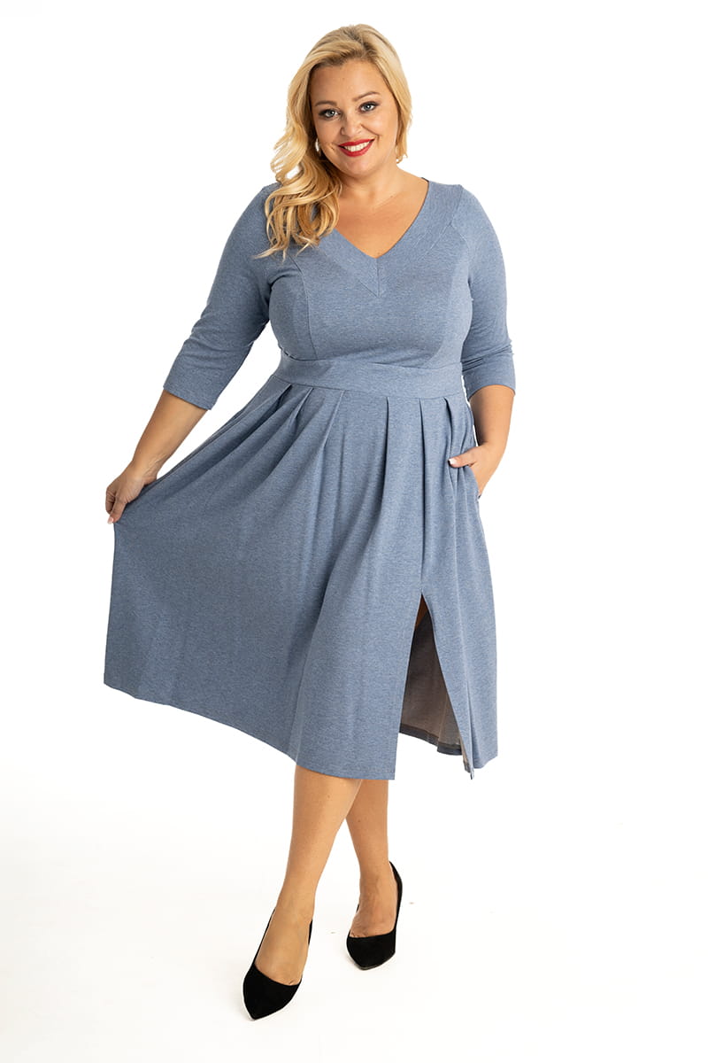 Poezja to propozycja na co dzień. Sukienka wykonana została z miękkiej dzianiny dresowej, dzięki czemu pięknie układa się i dopasowuje do sylwetki. Fałdki na spódnicy ukryją wystający brzuszek, a rozporek na lewej nodze i kieszenie w szwach bocznych dodadzą luzu i pewności siebie.To idealna sukienka dla każdej przebojowej i nowoczesnej kobiety.
