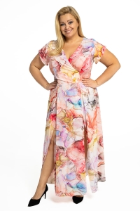 Sukienka Polina to propozycja na letnie przyjęcia, zarówno te mniejsze, jak i większe. Wykonana z cienkiej rozciągliwej tkaniny, odszyta cienką dzianinową podszewką nie krępuje ruchów i nie sprawia wrażenia ciężkiej, sztywnej kreacji. Przy każdym ruchu, czy powiewie wiatru uwidacznia skryte w fałdach rozporki, do tego krótki rękawek i dekolt w kształcie litery V dopełniają letni look tej sukienki.