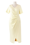 Sukienka Rena to propozycja na nadchodzące wesela. Długa kreacja wykonana z matowej, lekko pracującej tkaniny, z ładnym założeniem z przodu i promienistymi fałdkami, które kryją to i owo. Dekolt w kształcie litery V i rękawki przed łokieć dopełniają ten model, czyniąc go ponadczasowym. sukienka w całości odszyta jest podszewką i zapinana z tyłu na zamek błyskawiczny.