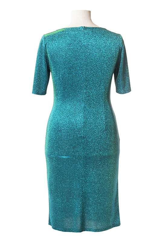 Rozalia to kreacja niczym z czerwonego dywanu, tym razem w wersji midi. Suknia wykonana z błyszczącej dzianiny, modeluje sylwetkę mocno podkreślając kształty. Dzięki odpowiedniemu balansowi miedzy sztywnością i poddatnością materiału, suknia "robi " nam figurę, a zakładki na brzuchu skutecznie go tuszują.