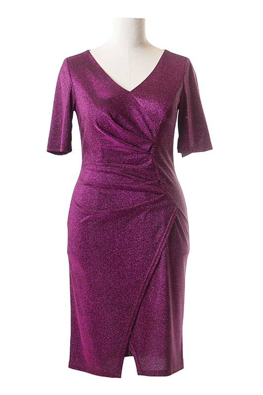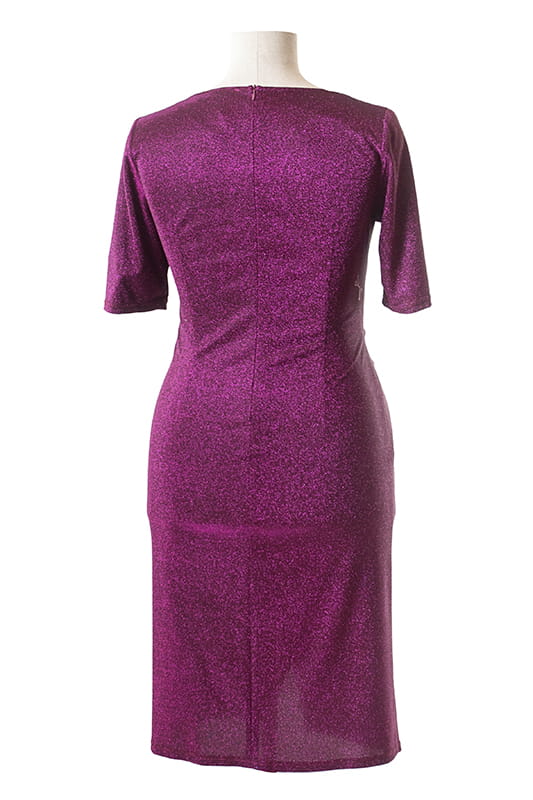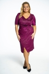 Rozalia to kreacja niczym z czerwonego dywanu, tym razem w wersji midi. Suknia wykonana z błyszczącej dzianiny, modeluje sylwetkę mocno podkreślając kształty. Dzięki odpowiedniemu balansowi miedzy sztywnością i poddatnością materiału, suknia "robi " nam figurę, a zakładki na brzuchu skutecznie go tuszują.