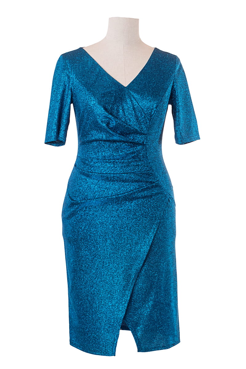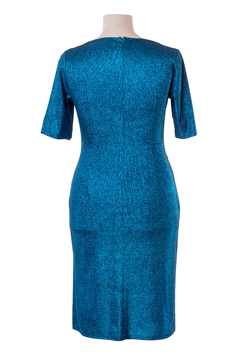 Rozalia to kreacja niczym z czerwonego dywanu, tym razem w wersji midi. Suknia wykonana z błyszczącej dzianiny, modeluje sylwetkę mocno podkreślając kształty. Dzięki odpowiedniemu balansowi miedzy sztywnością i poddatnością materiału, suknia "robi " nam figurę, a zakładki na brzuchu skutecznie go tuszują.