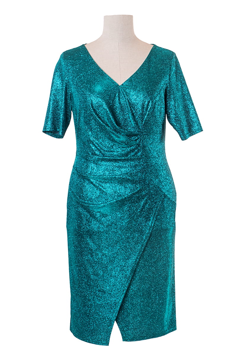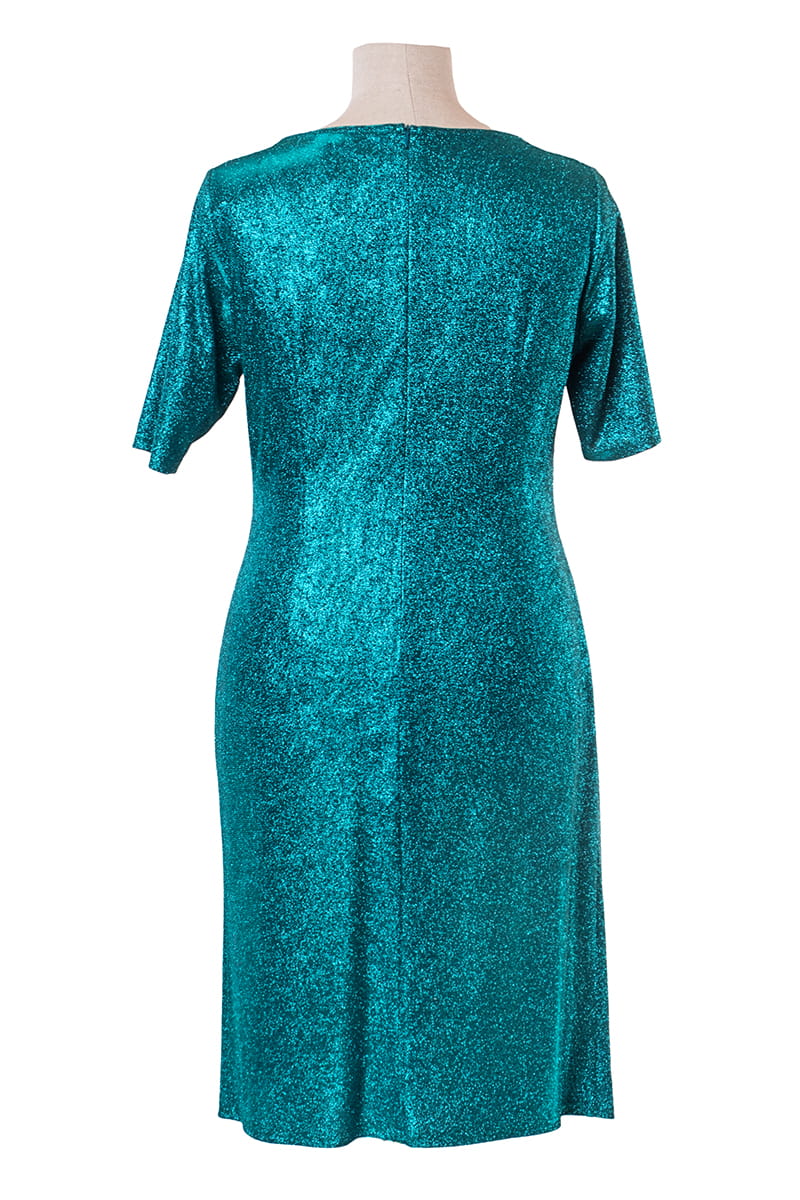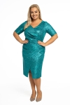 Rozalia to kreacja niczym z czerwonego dywanu, tym razem w wersji midi. Suknia wykonana z błyszczącej dzianiny, modeluje sylwetkę mocno podkreślając kształty. Dzięki odpowiedniemu balansowi miedzy sztywnością i poddatnością materiału, suknia "robi " nam figurę, a zakładki na brzuchu skutecznie go tuszują.