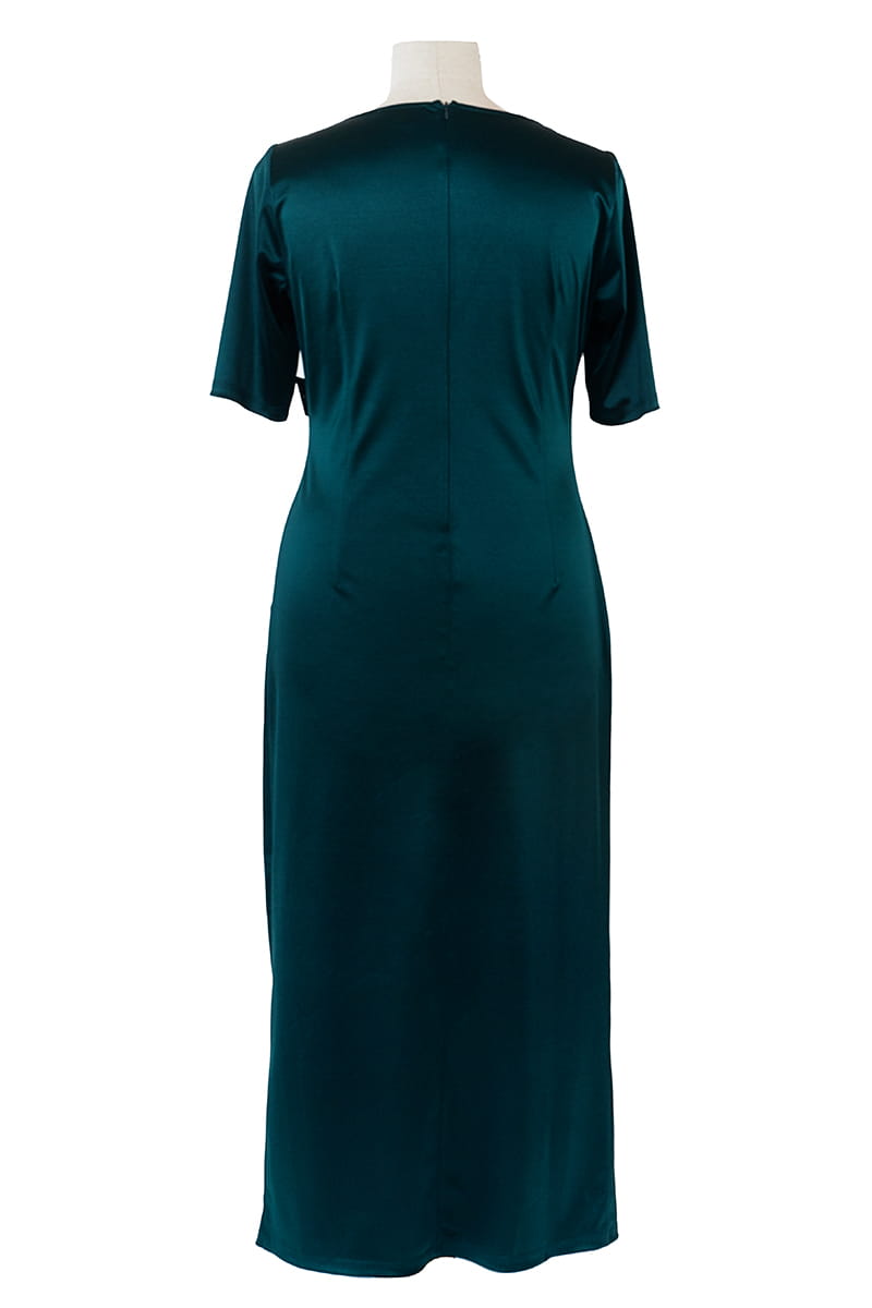Rozalia to kreacja niczym z czerwonego dywanu. Długa suknia wykonana z satyny, modeluje sylwetkę mocno podkreślając kształty. Dzięki odpowiedniemu balansowi miedzy sztywnością i poddatnością materiału, suknia "robi " nam figurę, a zakładki na brzuchu skutecznie go tuszują.