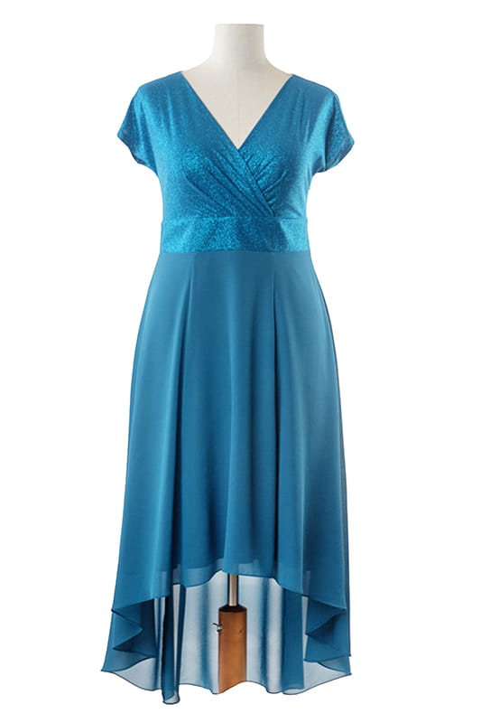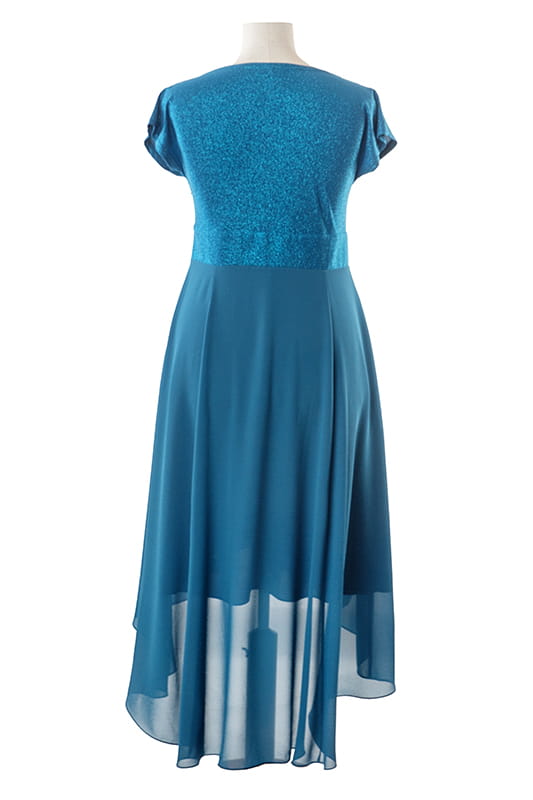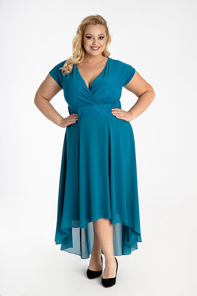 Scarlet to idealny model na wesele. Zwiewny, asymetryczny dół faluje w tańcu, dodając sylwetce lekkości i gracji. Góra sukienki wykonana została z połyskującej dzianiny, dzięki czemu dopasowuje się do sylwetki i nie krępuje ruchów. Zakładany dekolt eksponuje biust i optycznie wyszczupla szyję.