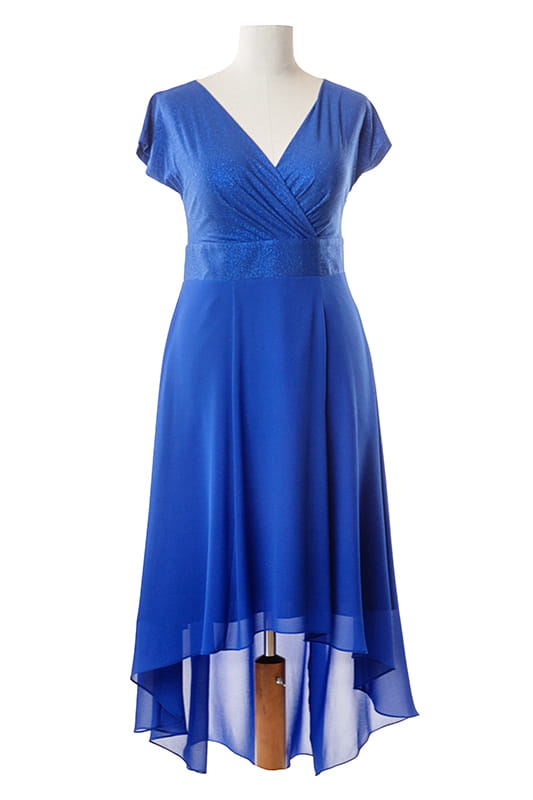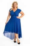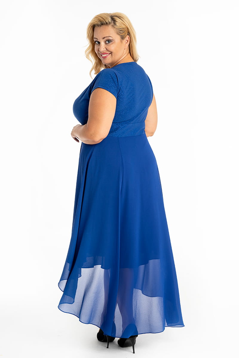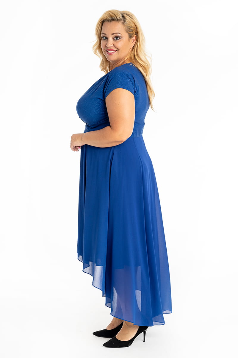 Scarlet to idealny model na wesele. Zwiewny, asymetryczny dół faluje w tańcu, dodając sylwetce lekkości i gracji. Góra sukienki wykonana została z połyskującej dzianiny, dzięki czemu dopasowuje się do sylwetki i nie krępuje ruchów. Zakładany dekolt eksponuje biust i optycznie wyszczupla szyję.