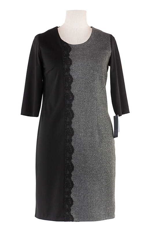 Klasyczna sukienka w kolorze czarnym z szaro-melanżową wstawką z przodu i efektowną koronką, sprawi że będziesz wyróżniać się z tłumu. Teri to sukienka lekko dopasowana, dekolt okrągły, z tyłu zapinana na kryty zamek. Nie posiada podszewki.