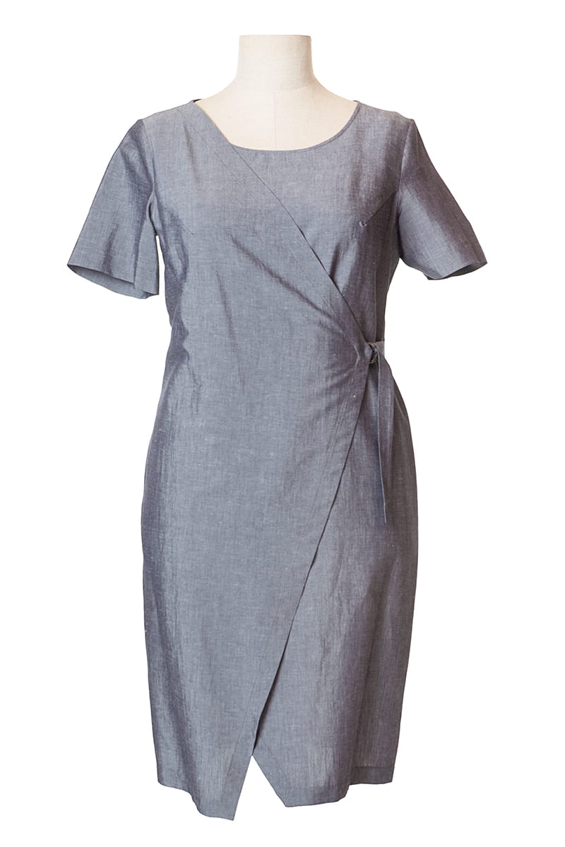 Tina to letnia sukienka z kopertowym przodem. Z tyłu zapinana na zamek błyskawiczny, z przodu można dopasować obwód talii poprzez ściągnięcie paseczkiem. Sukienka posiada bawełnianą podszewkę tylko w jasnych wariantach, pozostałe kolory są jednowarstwowe.