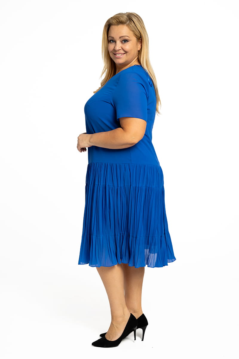 WERA to sukienka z szyfonu w całkiem nowej odsłonie. Model do tańca i do różańca, piękna, rozkloszowana, lekka i zwiewna. Dół sukienki pięknie układa się przy każdym ruchu dzięki temu, że uszyty został z marszczonych falban, a całość poddano fabrycznemu kreszowaniu.
